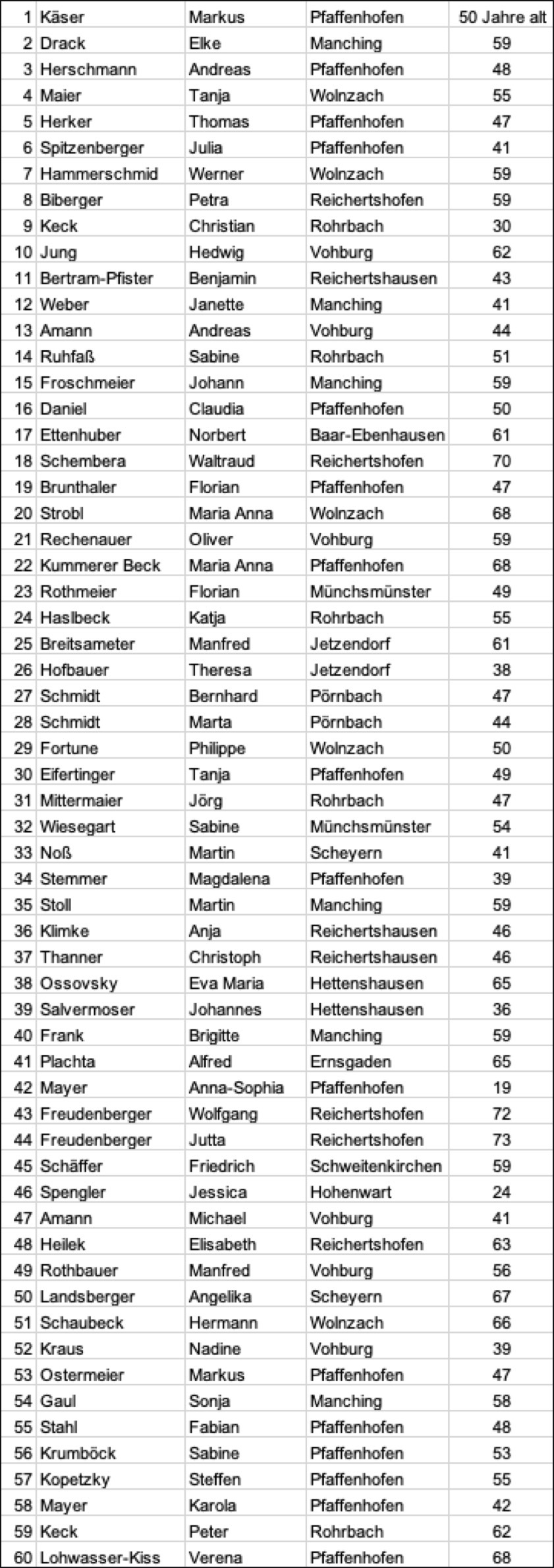 Angeführt wird die Riege von Markus Käser (50) aus Pfaffenhofen, der auch ins Rennen um den Landrats-Posten geht. Dahinter: Elke Drack und Andreas Herschmann.