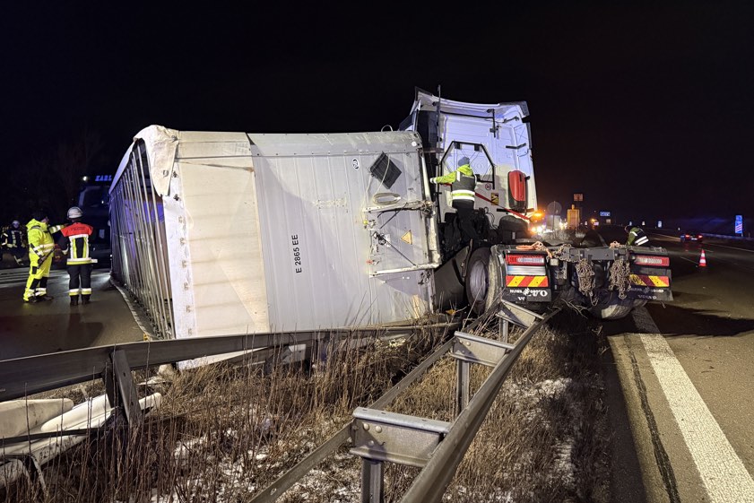 Der Verkehr werde seit dem Unfall an der Anschlussstelle Ingolstadt-Süd von der Autobahn abgeleitet. Nach Angaben der Polizei waren gegen 2.20 Uhr bei der Einsatz-Zentrale mehrere Mitteilungen über einen zwischen den A9-Anschlussstellen Ingolstadt-Süd und Ingolstadt-Nord verunglückten Lkw eingegangen. Laut ersten Meldungen sei der 69-jährige Fahrer eines bulgarischen Sattelzuges zu weit nach rechts gekommen, habe dort eine provisorische Leitplanke touchiert und sei anschließend durch die Mittel-Leitplanke gekracht. Der Auflieger sei umgestürzt, die Zugmaschine habe sich um 180 Grad gedreht und sei schließlich im Mittelstreifen zwischen den beiden Richtungs-Fahrbahnen zum Stehen gekommen.