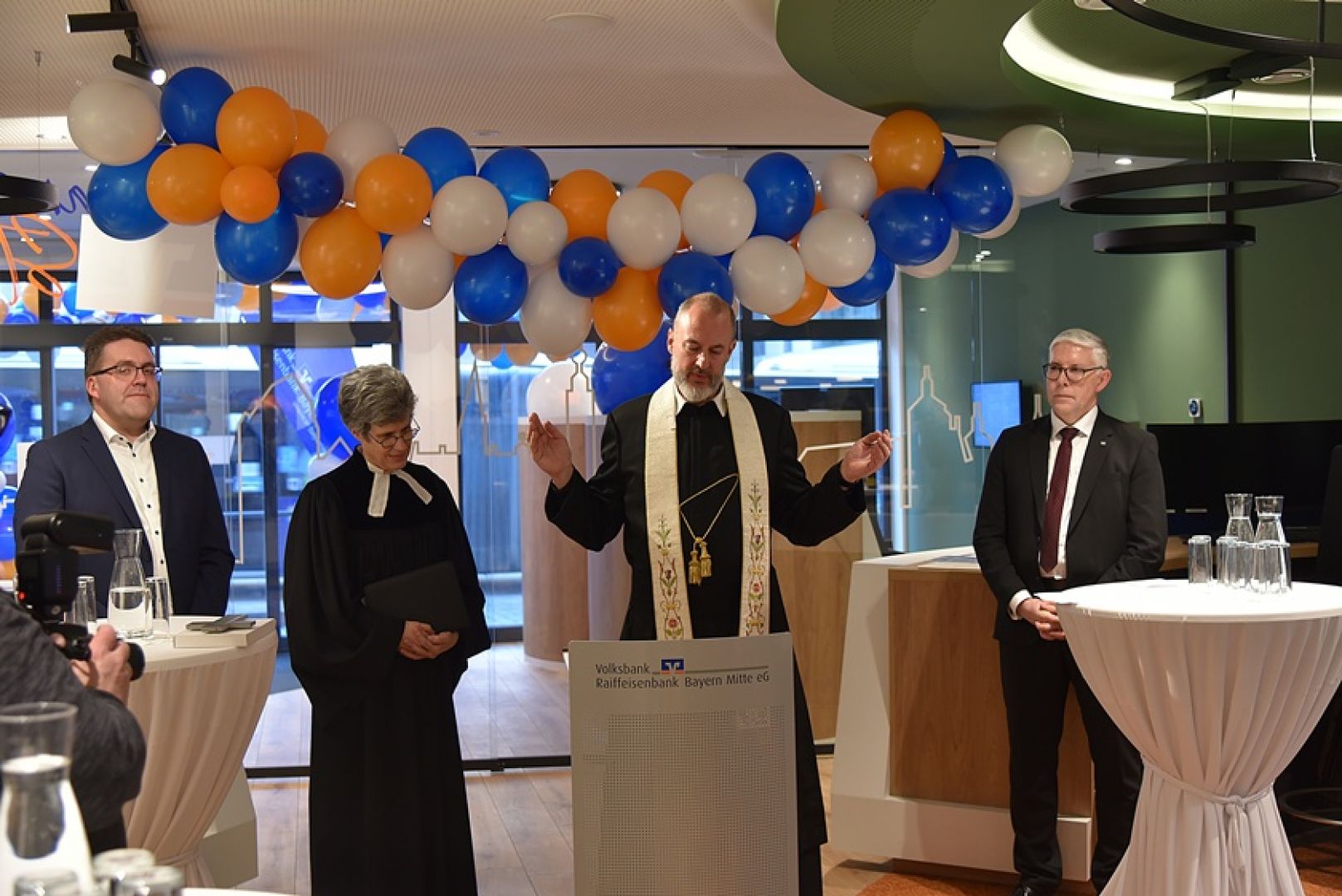Im Rahmen der Feierstunde setzte die Volksbank-Raiffeisenbank Bayern-Mitte mit dem kirchlichen Segen ein besonderes Zeichen – ein Aspekt, der den Verantwortlichen des Geldinstituts besonders am Herzen liegt. Die Gäste konnten sich nach dem offiziellen Teil einen Eindruck von der modernen Ausstattung und dem offenen Raumkonzept verschaffen. Die Veranstaltung klang in gemütlicher Atmosphäre mit einem Imbiss in den neuen Räumlichkeiten aus.