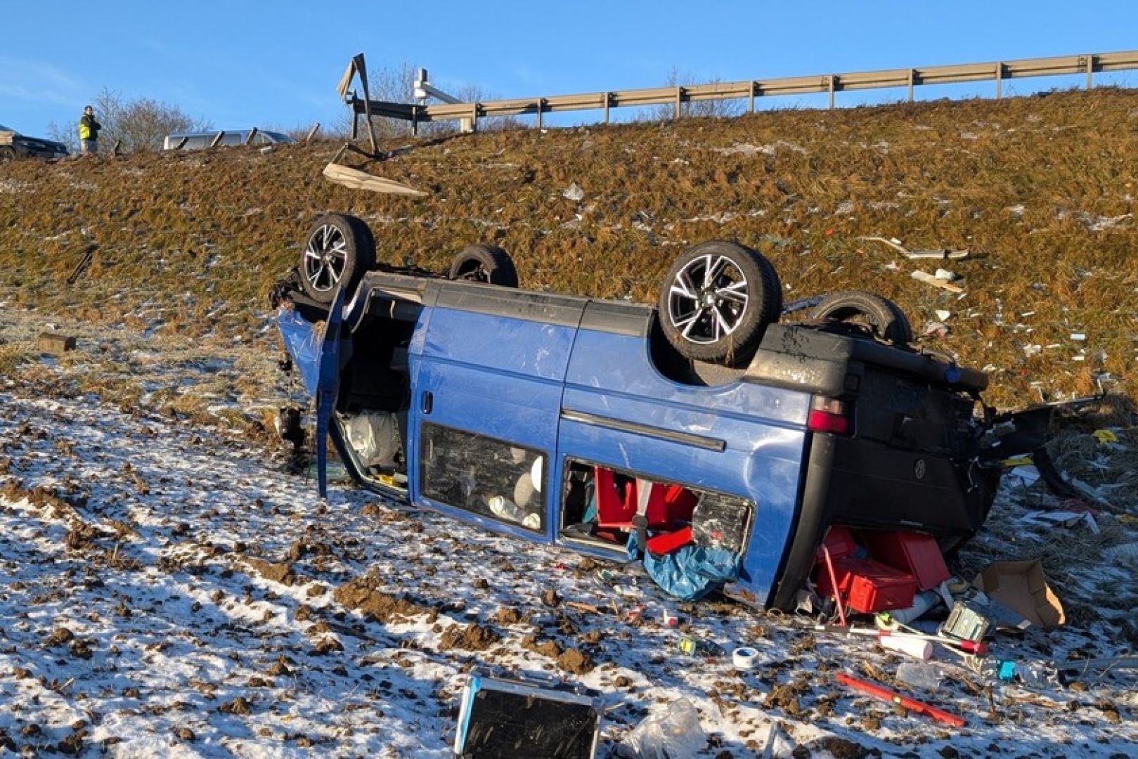 26-Jähriger krachte gestern mit seinem Pkw in einen Kleinbus, der daraufhin die Leitplanke durchbrach und sich mehrfach überschlug.