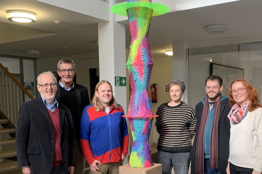Günter Helmbrecht (von links) und Norbert Ziegler sowie die Künstler Matthias Wurm, Annette Marketsmüller, Robert Rist und Silvia Gürtner.