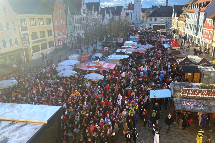 "Das bunte Faschings-Treiben lockte wieder einmal mit jeder Menge Musik, Tanz- und Show-Einlagen", so die Stadtverwaltung. Insgesamt seien rund 3000 bis 3500 Leute auf dem Hauptplatz zusammengekommen, "zeitweise feierten bis zu 2000 Gäste gleichzeitig". Auf zwei Bühnen – vor dem Rathaus und vor der Bäckerei Bergmeister – präsentierten mehrere Prinzen-Garden und Tanz-Gruppen auch heuer ihre Programme und zeigten ihr Können. Außerdem sorgte "DJ Julez" für Party-Stimmung. Für die Bewirtung sorgten Vereine und Gastronomen aus der Kreisstadt und Umgebung.