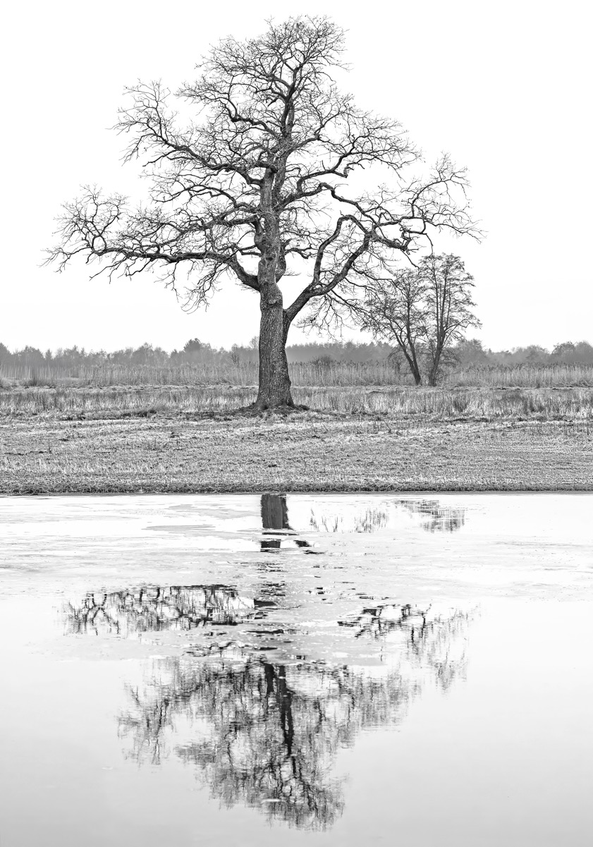 (ty) Weiter geht sie, die Serie von beeindruckenden Fotos aus der Region, die uns unsere Leserinnen und Leser nach wie vor übermitteln. Das Bild, das wir Ihnen heute zeigen können, hat uns Rainer Schaaf von den Fotofreunden aus Scheyern zukommen lassen. Er ist ein passionierter Natur-Fotograf aus Pfaffenhofen an der Ilm, der uns schon viele Male mit faszinierenden Tier- und Pflanzen-Motiven zum Staunen gebracht hat. Diesmal hat er eine alte Eiche im Feilenmoos ins Visier genommen. Vor dem Baum befindet sich eine große Wasserstelle, in der dieser sich spiegelte (siehe unten). "Durch die Schwarz-Weiß-Konvertierung wirkt die alte Eiche noch imposanter", erklärt Schaaf.
