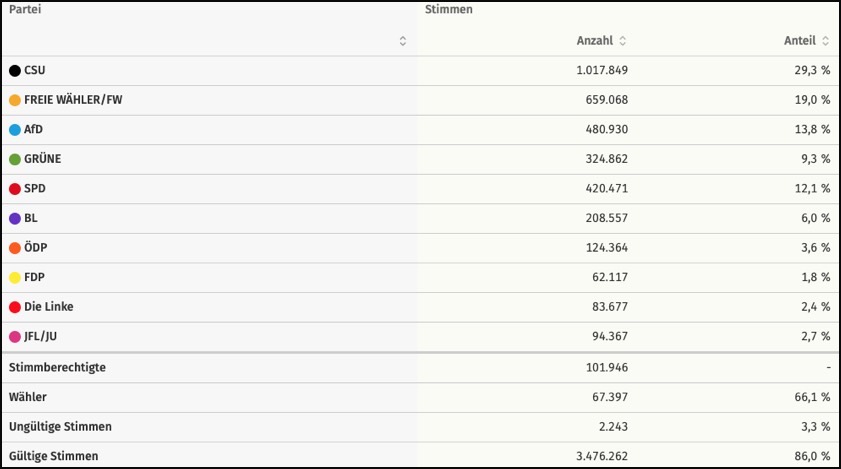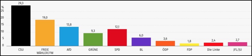 AfD erringt etliche Mandate dazu, alle anderen Fraktionen büßen je einen Sitz ein, CSU bleibt klar stärkste Riege, JFL/JU und Linke ziehen neu ins Gremium ein.