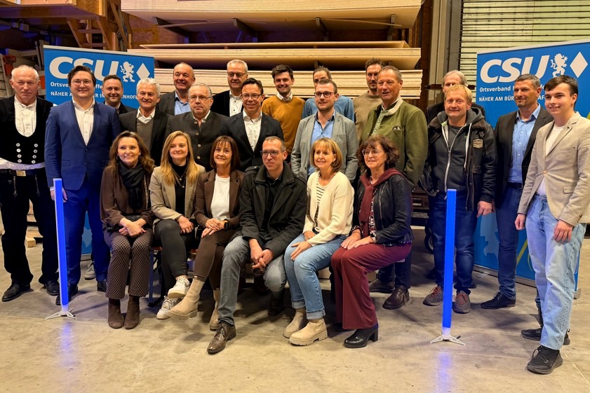 Angeführt wird die 30-köpfige Riege vom Bürgermeister-Kandidaten Markus Hartmann. Dahinter: Angelika Schwarzmeier, Fabian Flössler und MdB Christian Moser.
