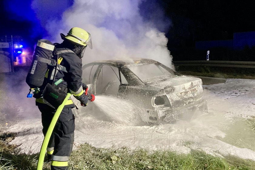 Lösch-Einsatz gestern bei Ingolstadt. Nach dem Einschalten der Heizung entwickelte sich in dem Wagen ein Feuer. Der Fahrer konnte sich selbst und seinen Rucksack retten.
