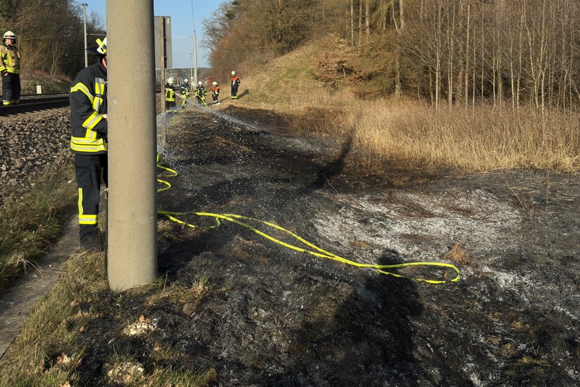 Vermutlich durch Funkenflug hatte sich am gestrigen Nachmittag ein zirka 400 Quadratmeter umfassender Flächenbrand entwickelt.