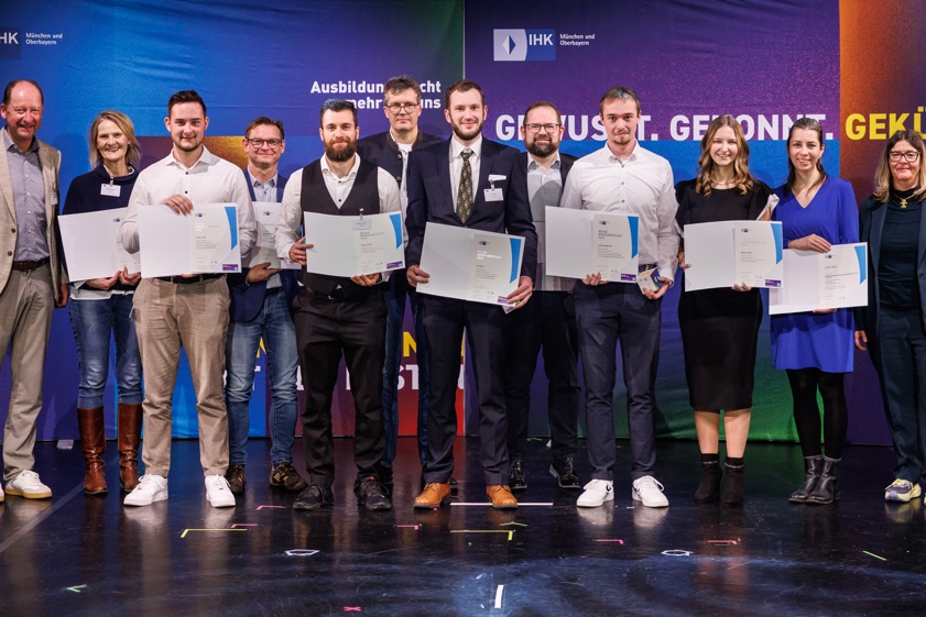 Stefanie Mayr, Lukas Leiter, Jonas Handschuh, Niklas Humm und Jim Guld haben in ihrem jeweiligen Beruf das oberbayernweit beste Prüfungs-Ergebnis erzielt.