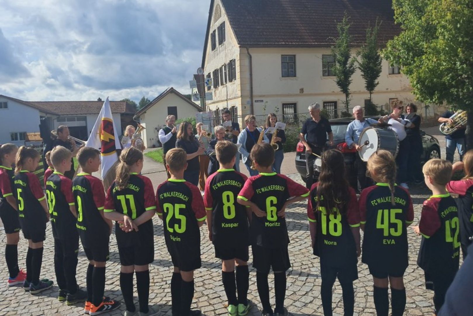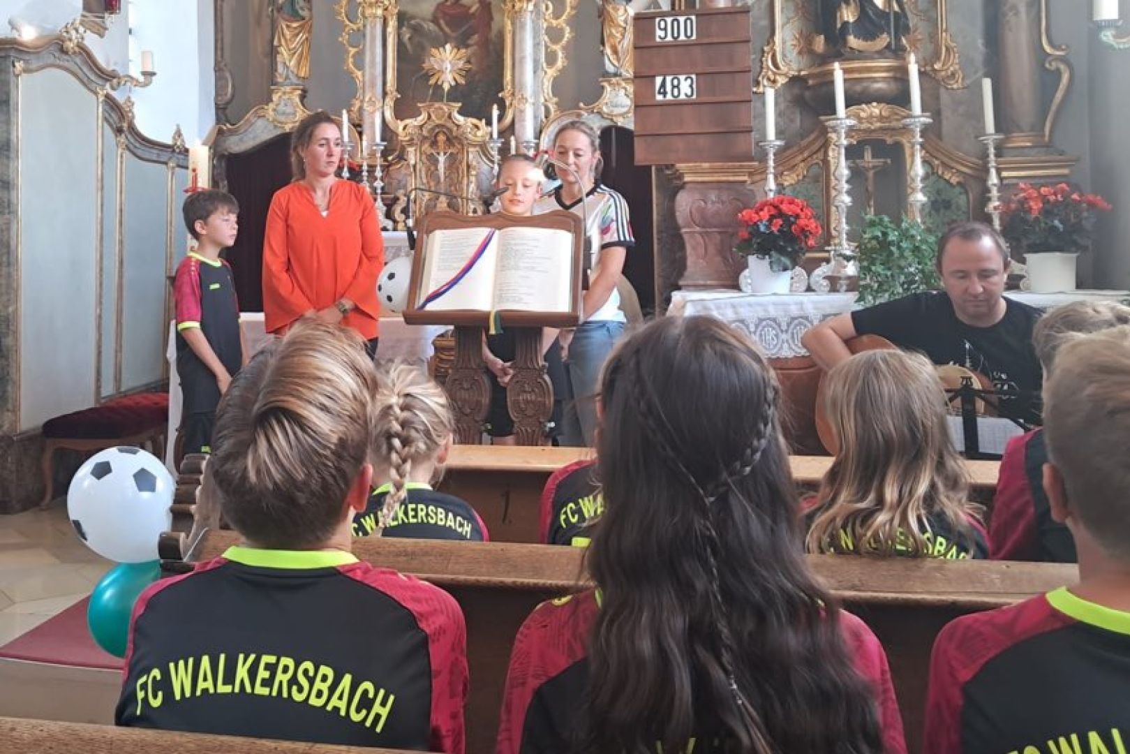 Die Sprösslinge zogen zunächst in ihren neuen Fußball-Trikots sowie mit der neuen "FC Walkersbach"-Fahne in die Kirche ein. Dort fand eine kurzweilige Andacht statt, die von Pater Arul sowie Andrea und Tobias Moosmayr gestaltet wurde. Vom Dorfplatz aus wurde dann, in Begleitung der Stadtkapelle von Pfaffenhofen, gemeinsam zum Bolzplatz gezogen. Pater Arul segnete das Areal und Bürgermeister Thomas Herker (SPD) danke den Walkersbachern für die erbrachte Eigenleistung.