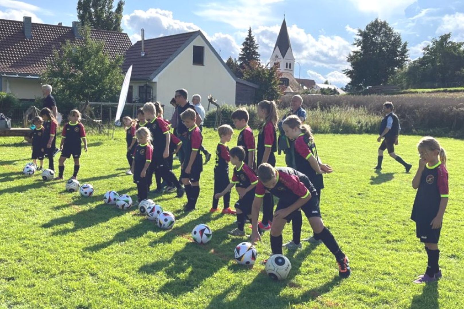 "Viele freiwillige Helfer packten mit Maschinen und Muskelkraft mit an und verwandelten die ehemalige Schafweide in einen fast perfekten kleinen Fußballplatz", heißt es weiter. Sehr großzügig sei man vom Jugendfußball-Förderverein aus Pfaffenhofen sowie von der Kreisstadt unterstützt worden. Tore, Netze, Eckfahnen und weitere Utensilien seien angeschafft worden. Zum Sommer-Ferien-Auftakt konnte nun am vergangenen Freitag eine Einweihungs-Feier über die Bühne gehen.