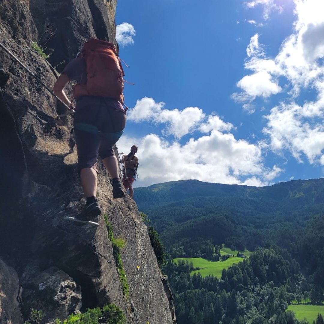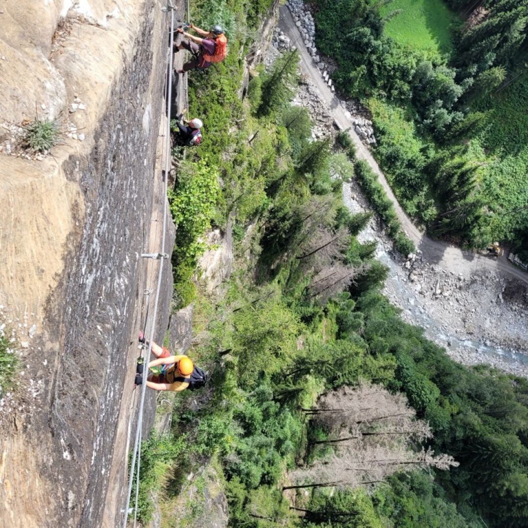 (ty) "Eigentlich war der Mittenwalder Höhenweg geplant. Aber das Wetter vertrieb uns südwärts – und so gingen wir den Ölberg-Klettersteig in Südtirol", berichtet Touren-Leiter Thomas Klotz von der Sektion Pfaffenhofen-Asch des deutschen Alpenvereins (DAV). Dieser erst im Jahre 2020 geschaffene Steig sei bestens gesichert. Er sei außerdem hervorragend in sehr steilem bis senkrechtem Gelände angelegt und verlaufe dabei durch erstklassigen Fels.