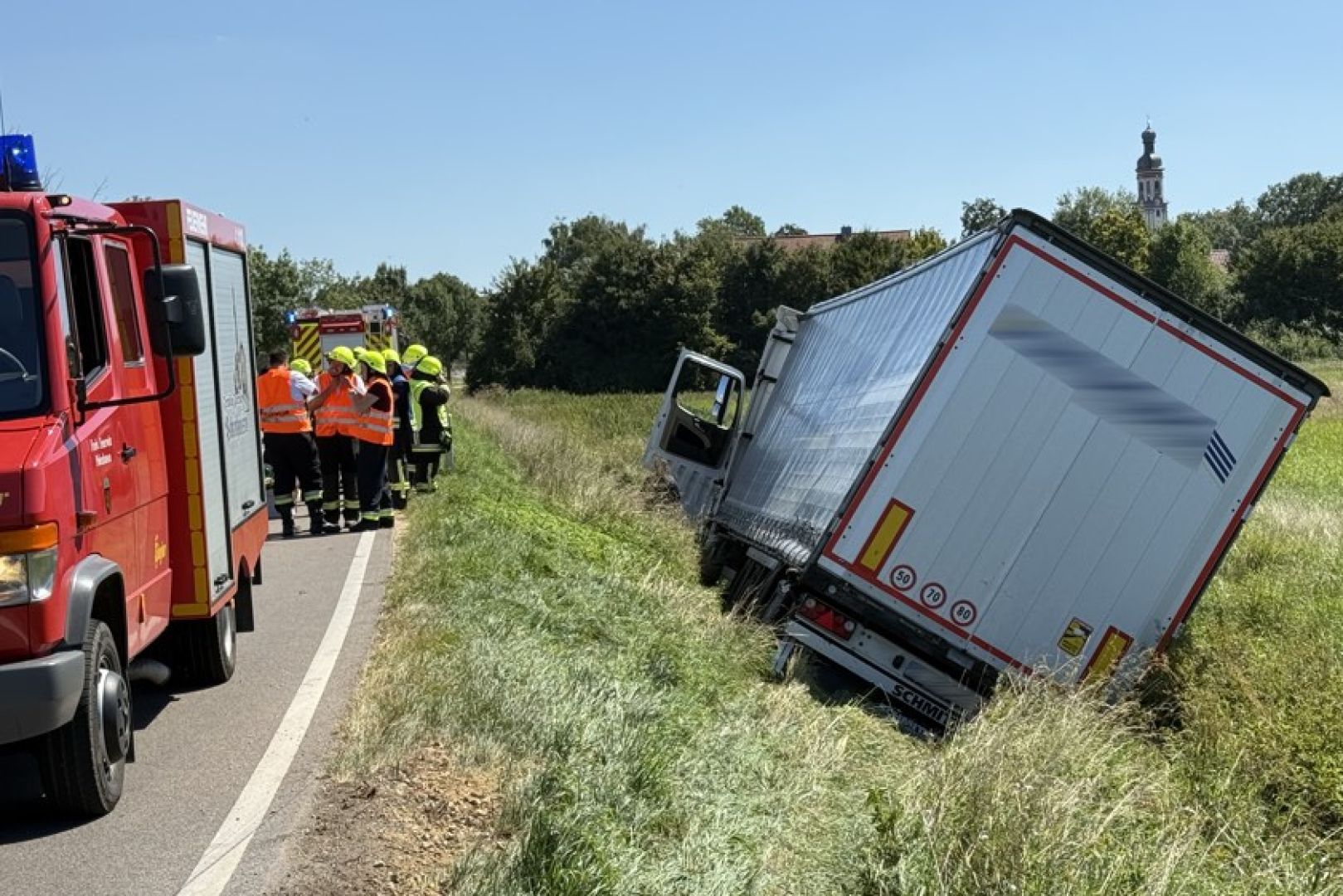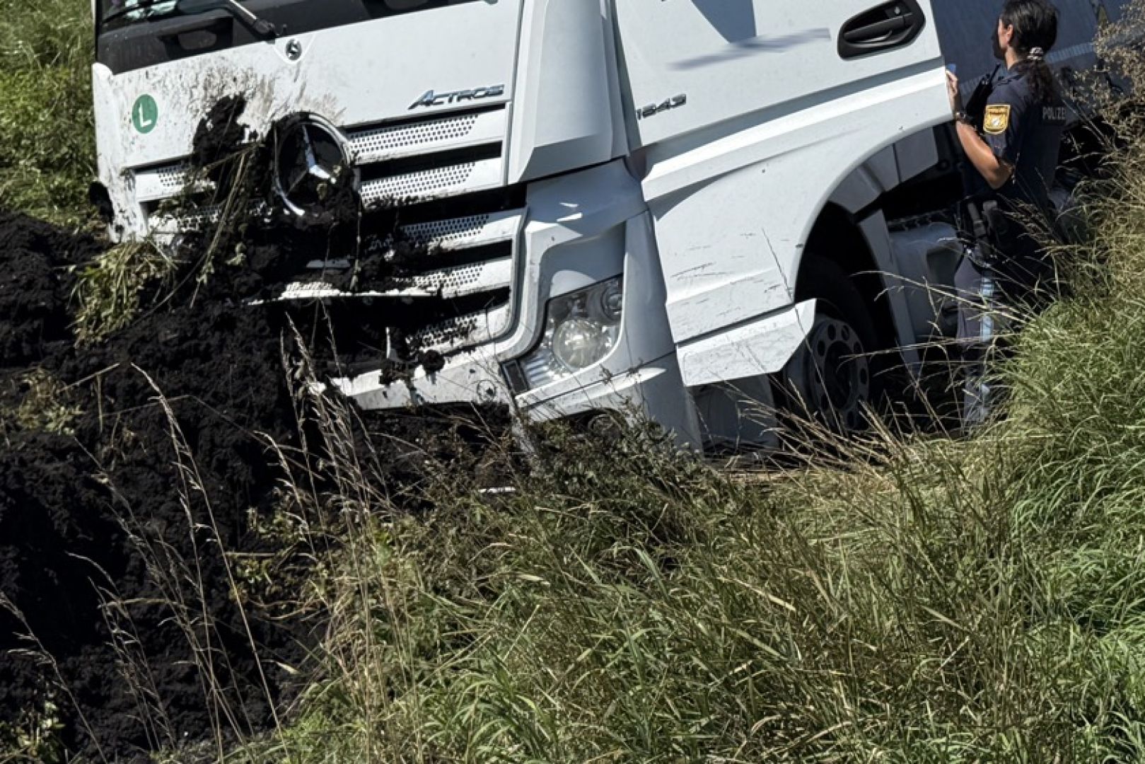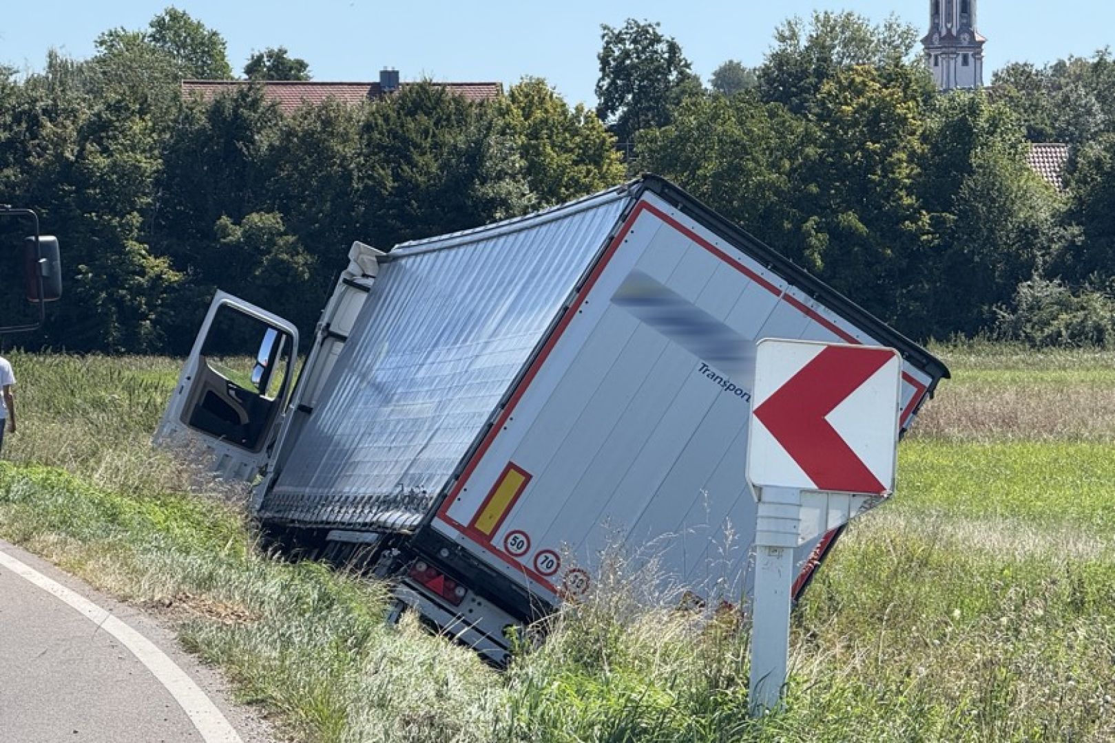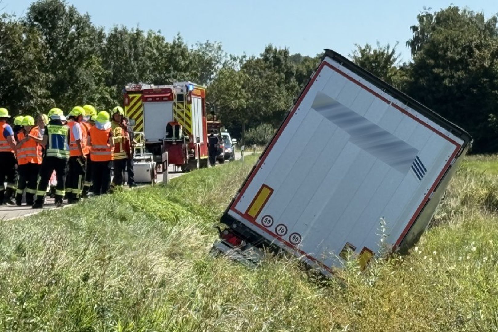Der Unfall geschah gegen 11.40 Uhr. Nach Erkenntnissen der Polizei war ein 55-jähriger Lkw-Fahrer aus Südosteuropa mit dem Sattelzug auf der Staatsstraße 2048 von Probfeld in Richtung Pobenhausen unterwegs. Trotz roten Blinklichts habe er den dortigen Bahn-Übergang überquert, bei dem die Schranken noch geöffnet gewesen seien. Im weiteren Verlauf sei der unbeladene Sattelzug in einer langgezogenen Links-Kurve nach rechts ins Bankett geraten und anschließend von der Fahrbahn abgekommen. Nach mehreren Metern sei das Gespann im Bereich eines Wassergrabes zum Stehen gekommen.