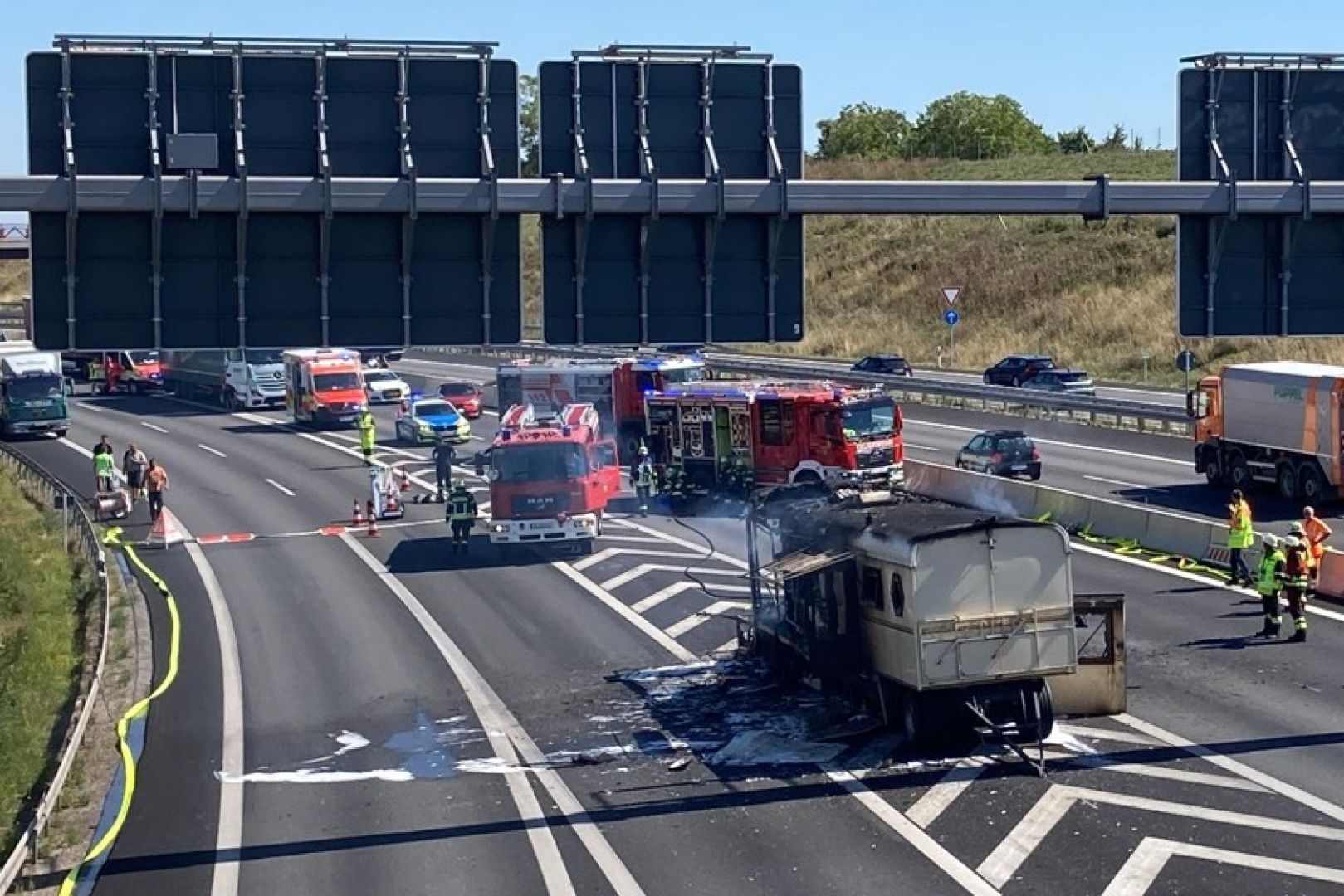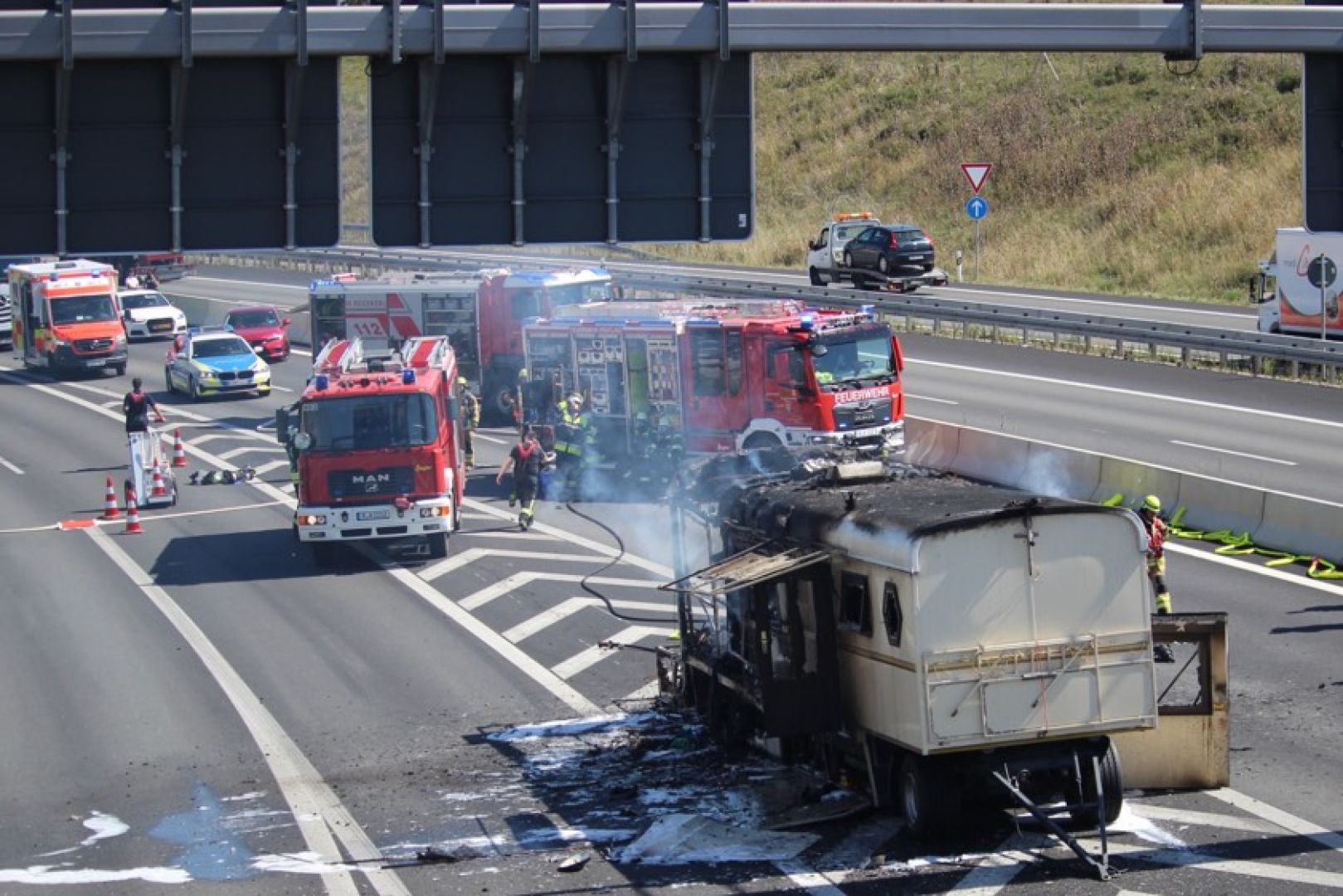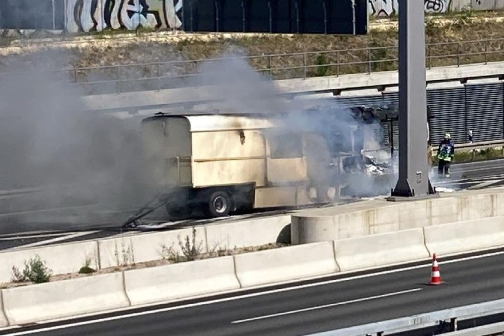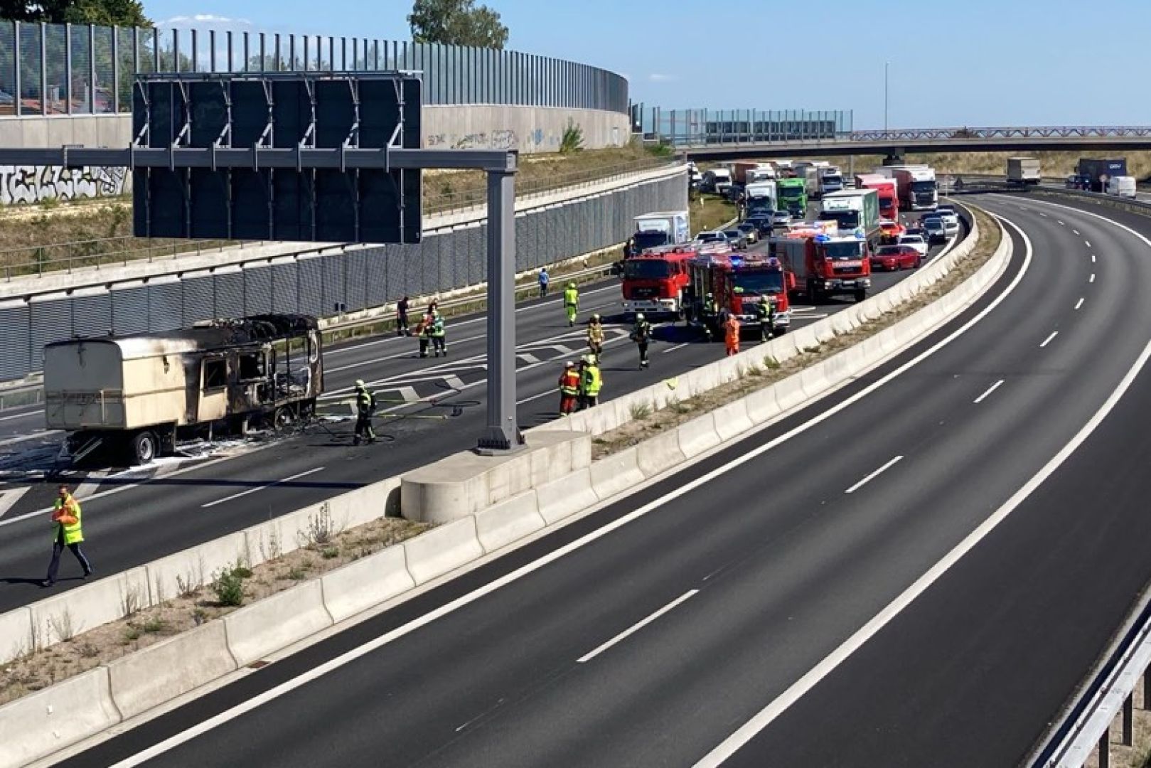 Wegen der starken Rauch-Entwicklung kam der Verkehr heute Nachmittag zeitweise in beiden Richtungen komplett zum Erliegen.