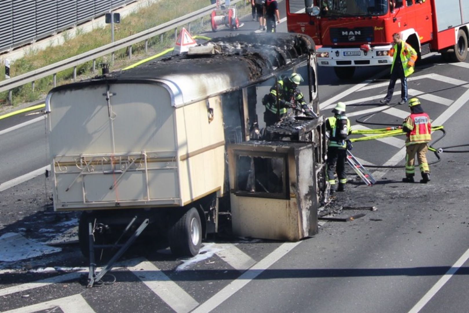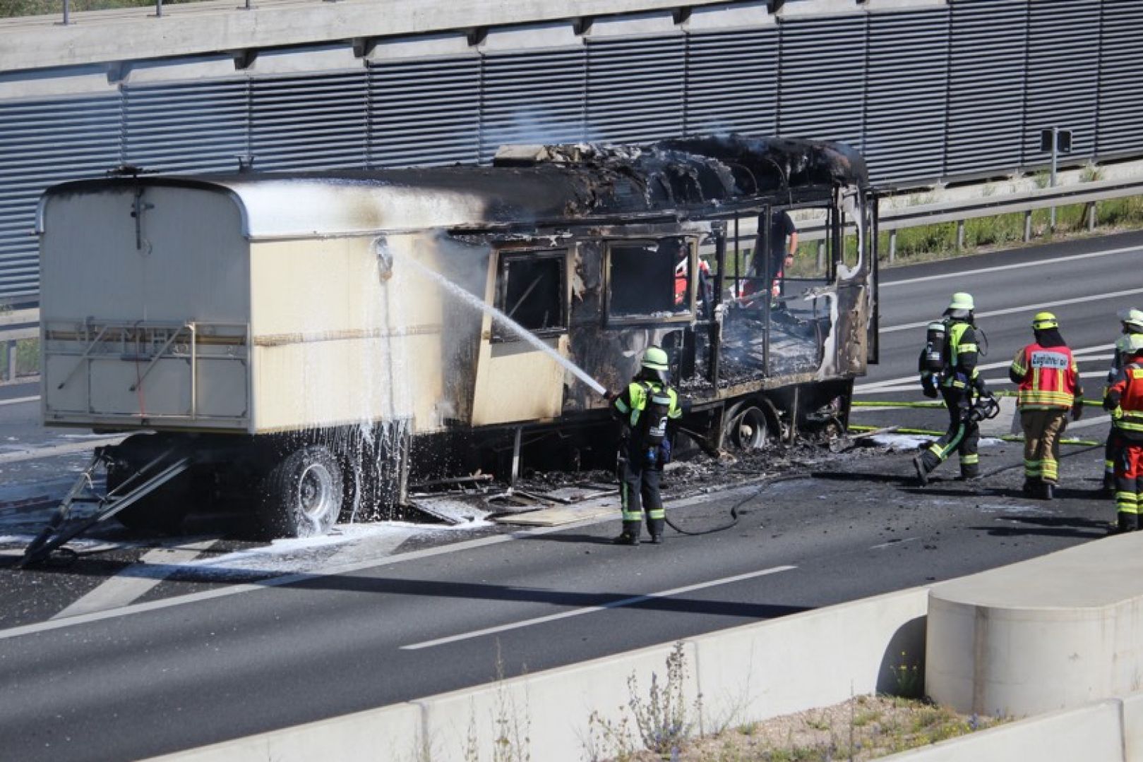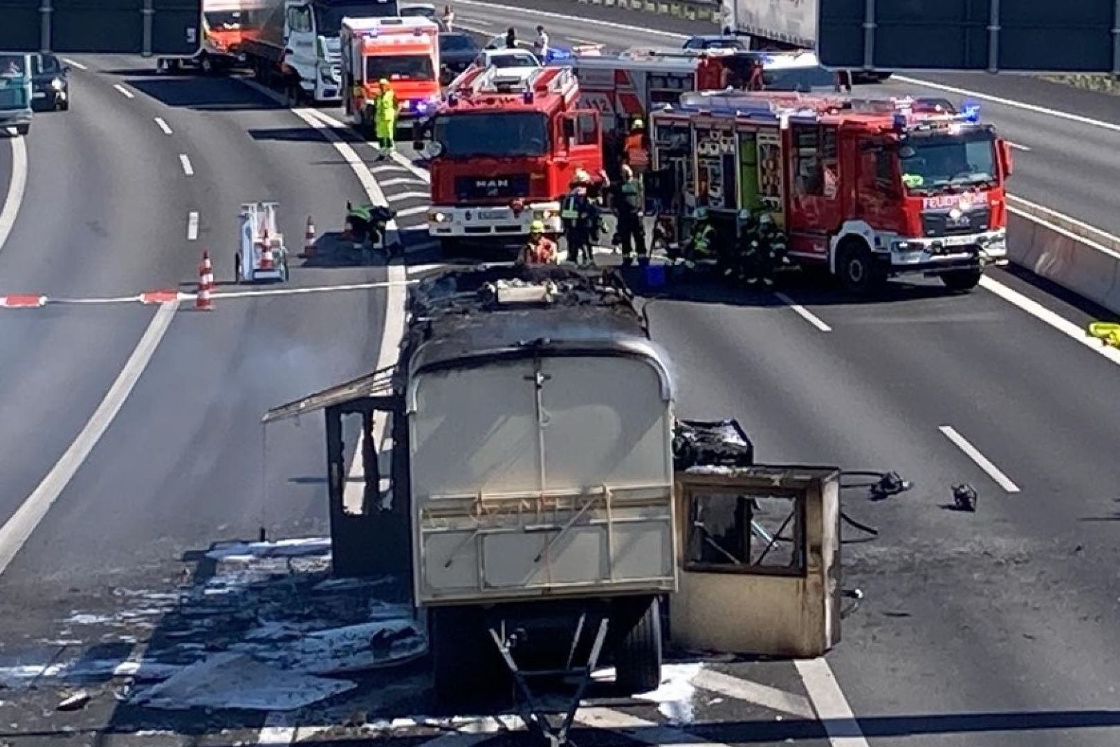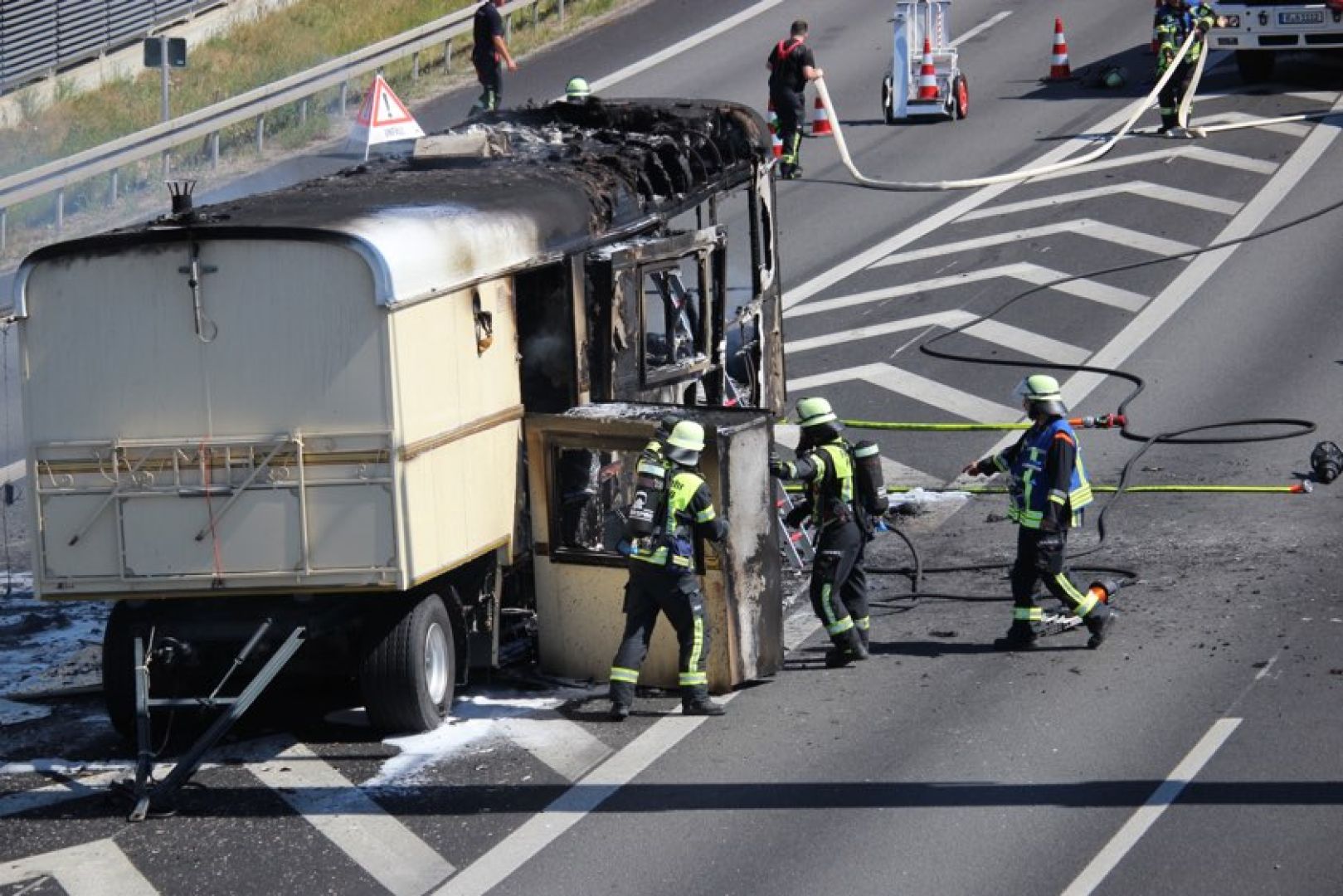 Wie die Polizei berichtet, war ein Reifen-Platzer die Ursache dafür, dass der Wohnanhänger in Flammen geriet und letztlich ausbrannte. "Nachdem der Brand weitestgehend unter Kontrolle war, wurde die Fahrbahn in Richtung Passau nach knapp einer Stunde wieder für den Verkehr freigegeben", heißt es weiter. "Inzwischen konnte auch die linke Fahrspur der A3 in Fahrtrichtung Nürnberg wieder für den Verkehr geöffnet werden", wurde gegen 16.15 Uhr gemeldet. Die Überleitungen der A3 von Passau kommend auf die A93 in Richtung Hof und München waren wegen der Bergungs-Maßnahmen noch länger gesperrt.