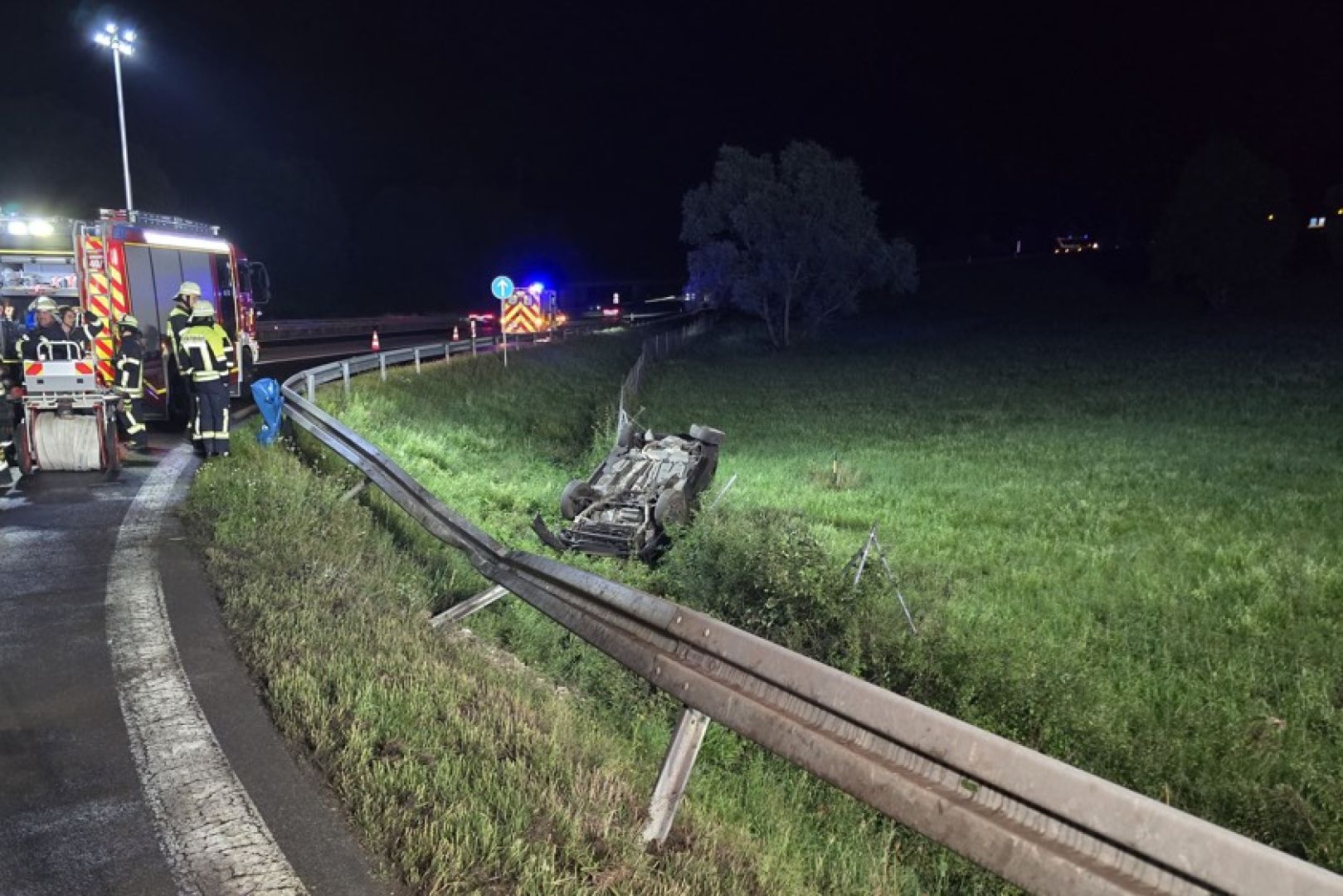 35-Jähriger verlor gestern Abend beim Überholen die Kontrolle über seinen Wagen. Der Pkw überschlug sich und landete auf dem Dach neben der Autobahn.