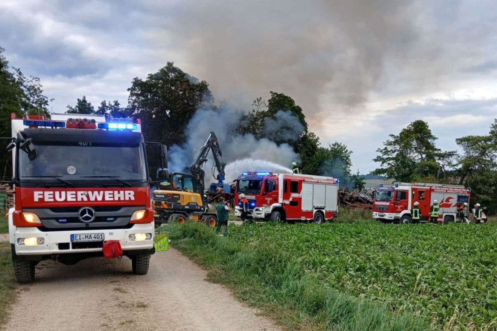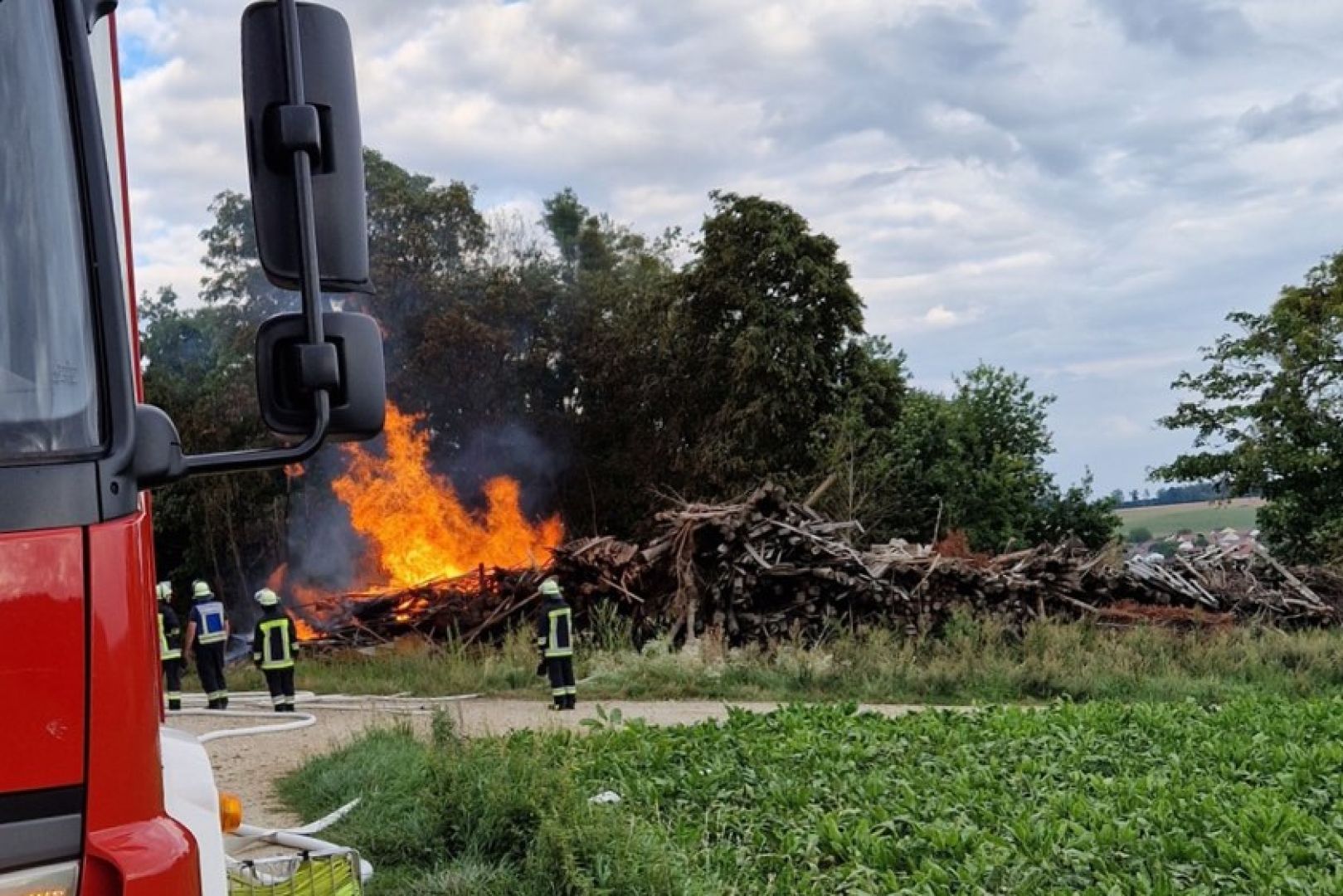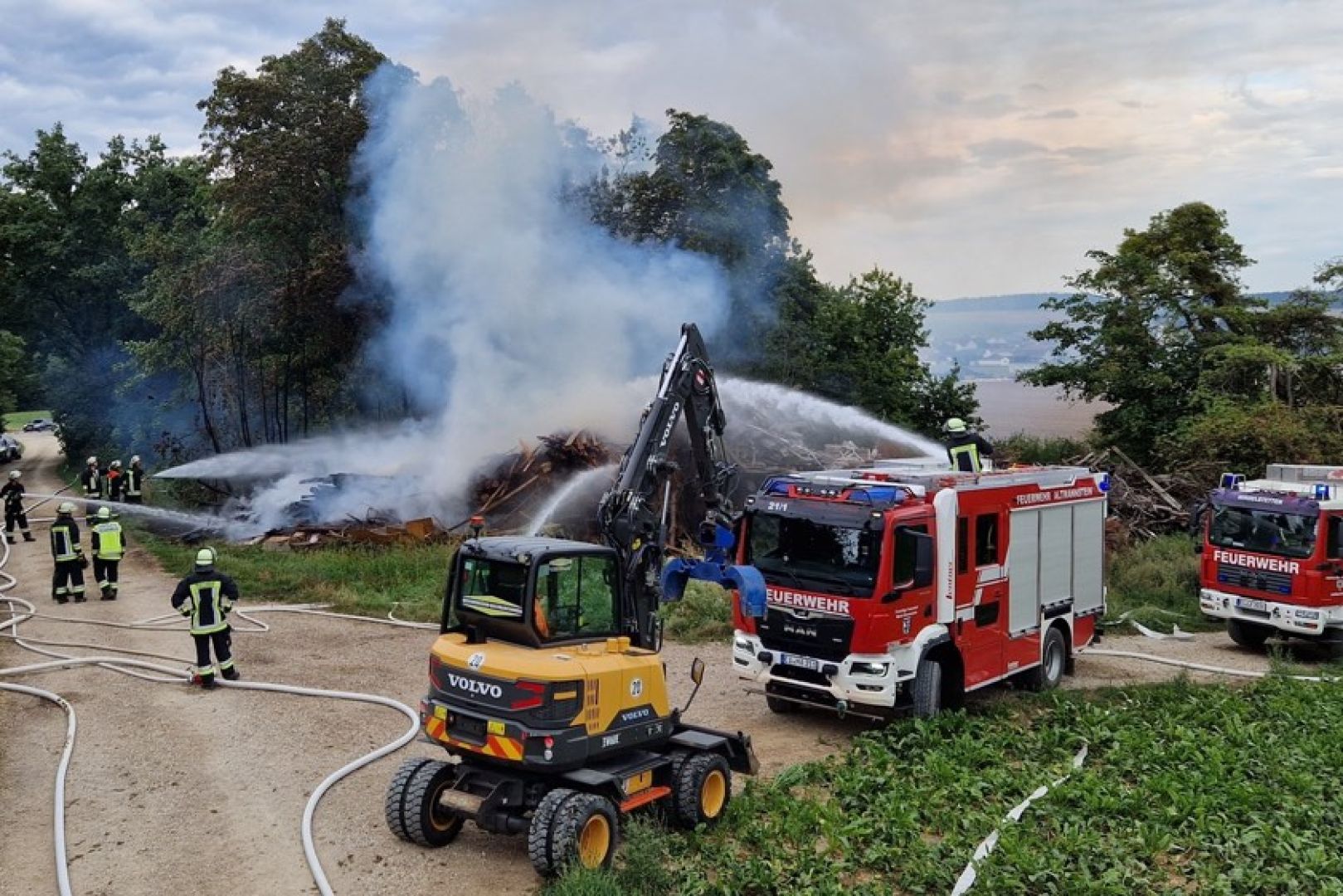 Kripo geht derzeit von Brandlegung aus: Lagerholz bei Altmannstein in Flammen
