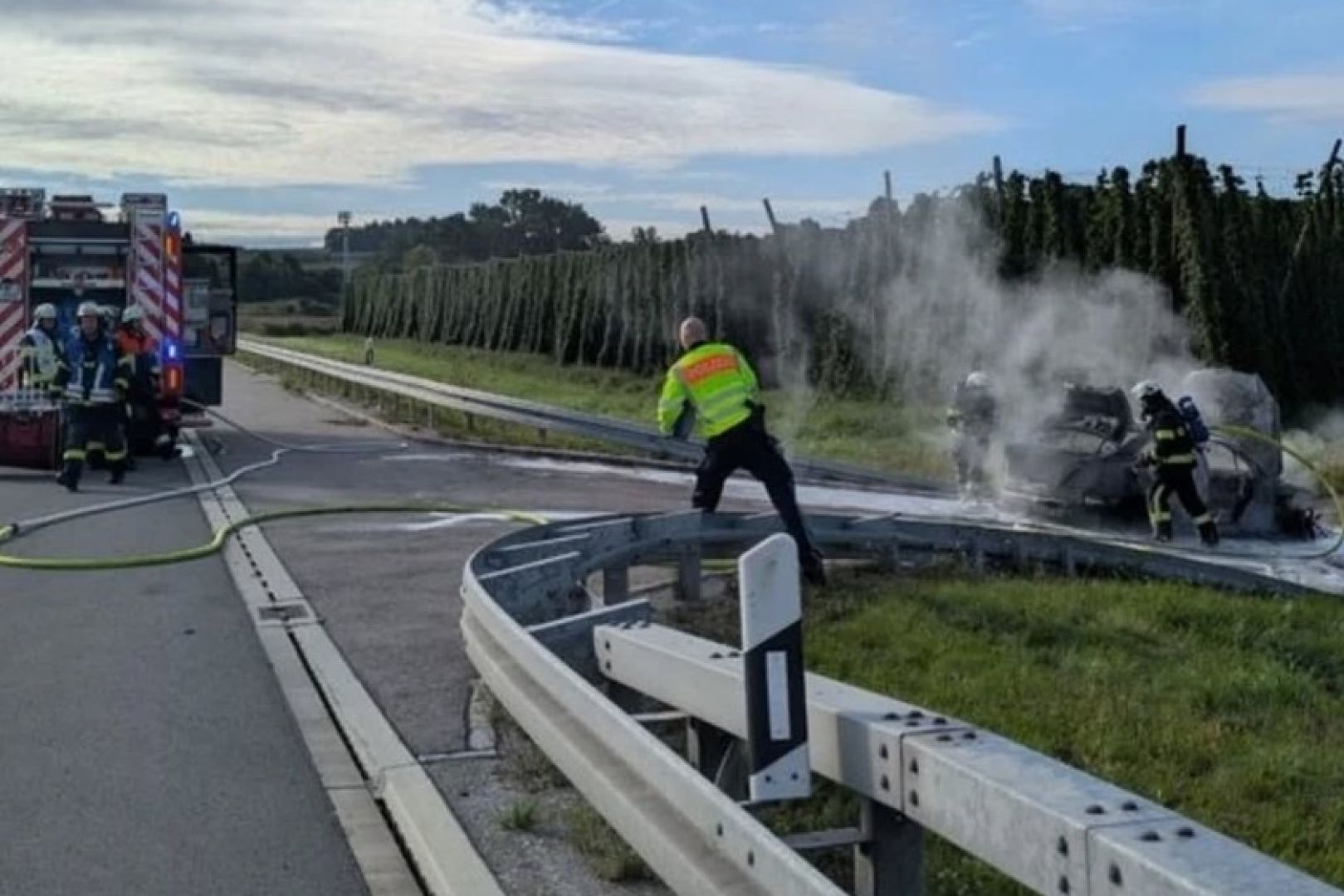 Wagen geriet gestern während der Fahrt in Richtung Süden in Flammen, 36-Jähriger steuerte ihn in eine Behelfs-Ausfahrt. Verletzt wurde zum Glück niemand.
