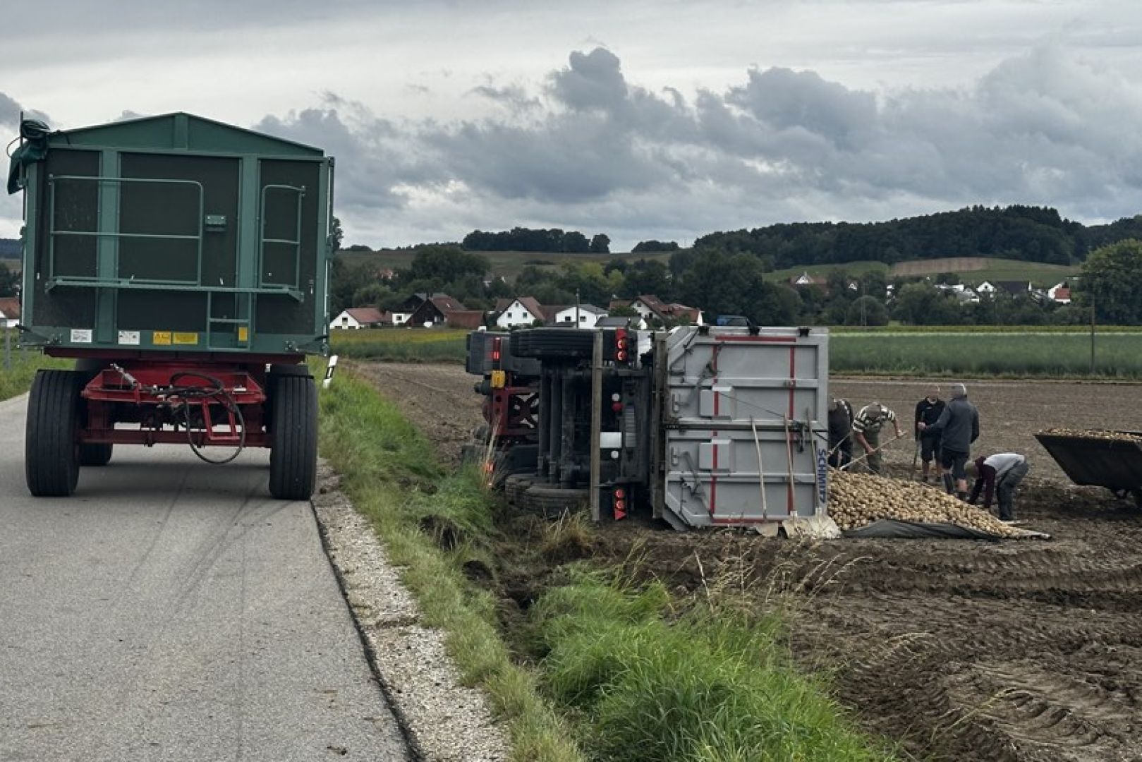 "Dabei flogen die geladenen Kartoffeln auf die Fahrbahn und in den Grünstreifen", berichtet ein Polizei-Sprecher. Der 27 Jahre alte Lastwagen-Lenker habe sein Führerhaus unverletzt verlassen können. Der an dem Lkw-Gespann entstandene Sachschaden wurde von Streifenbeamten auf 20 000 Euro geschätzt. Die Straße sei vom Gemeinde-Bauhof gesperrt worden. Der Lkw sei von einem Abschlepp-Dienst geborgen worden. "Die Kartoffeln konnten wieder geladen beziehungsweise umgeladen werden", so der Polizei-Sprecher.
