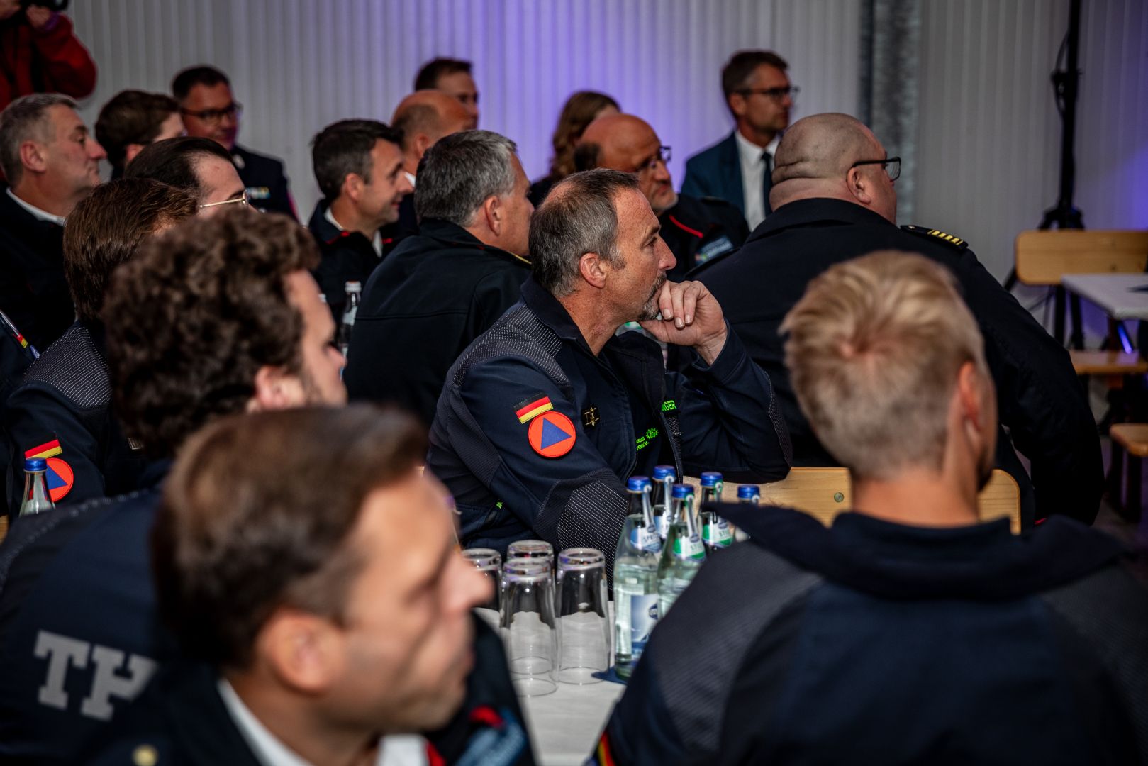 Die Gäste erhielten außerdem ein Update zu aktuellen Projekten und Beschaffungen. Dazu zählen unter anderem neue Pumpen-Systeme, moderne Beleuchtungs-Einheiten, ein Bild-Übertragungs-System für den Drohnen-Trupp sowie spezielle Geräte für die Großtier-Rettung. Auf der Agenda stand zudem Vorstellung des neuen Mannschafts-Transportwagens, dessen Anschaffung durch Unterstützung des Landkreises, der Gemeinden, der Sparkasse sowie Privatspender ermöglicht worden war.
