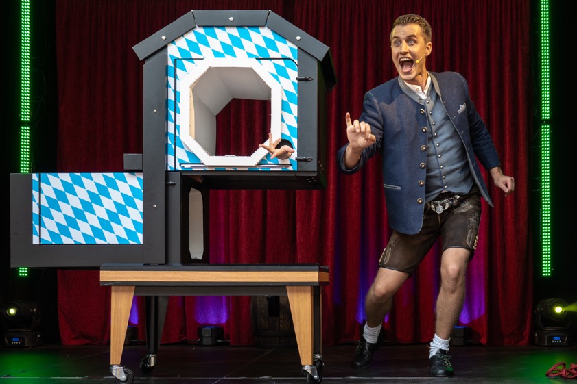 (ty) Die für dieses Jahr letzte Veranstaltung aus der in Geisenfeld angebotenen Reihe "Z'sammasitz'n" findet am morgigen Mittwoch, 8. Oktober, statt. Beginn des Events im Alten- und Pflegeheim "St. Emmeram" ist um 19 Uhr. Wie die Stadtverwaltung weiter erklärt, gibt es einen magischen Abend mit dem Zauberkünstler Florian Otto (Foto oben). Mit seinem Programm "Unfassbar" bringe er ein besonderes Stück bayerischer Unterhaltungskultur auf die Bühne: Ein Fass, randgefüllt mit "Weißblauer Zauberkunst" – so nennt er seine charmante Lederhosen-Zauberei, die mit Witz, Charme und überraschenden Effekten das Publikum begeistern. Die Veranstaltung steht allen Interessierten offen; der Eintritt ist kostenfrei.