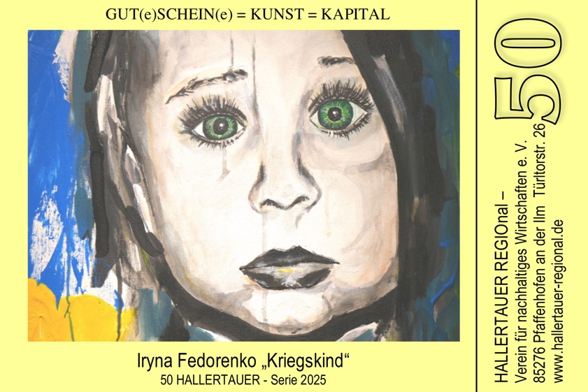 Wie der Verein weiter erklärt, sind aus dem Umtausch von Euro in "Hallertauer" im vergangenen Jahr – aufgestockt von Sitzungs-Geldern der örtlichen Wähler-Gruppe "Gemeinsam für Gemeinwohl" (GfG), für die Manfred "Mensch" Mayer im Pfaffenhofener Stadtrat sitzt – insgesamt 1000 Euro zusammengekommen. Mayer ist auch Vorsitzender des "Hallertauer Regional"-Vereins. Er sowie Hellmuth Inderwies, ehemaliger Kultur-Referent des Stadtrats von Pfaffenhofen, werden bei der Vernissage am morgigen Freitagabend in die Ausstellung in der städtischen Galerie einführen. Begrüßt werden die Gäste zuvor von Reinhard Haiplik, dem aktuellen Kultur-Referenten.