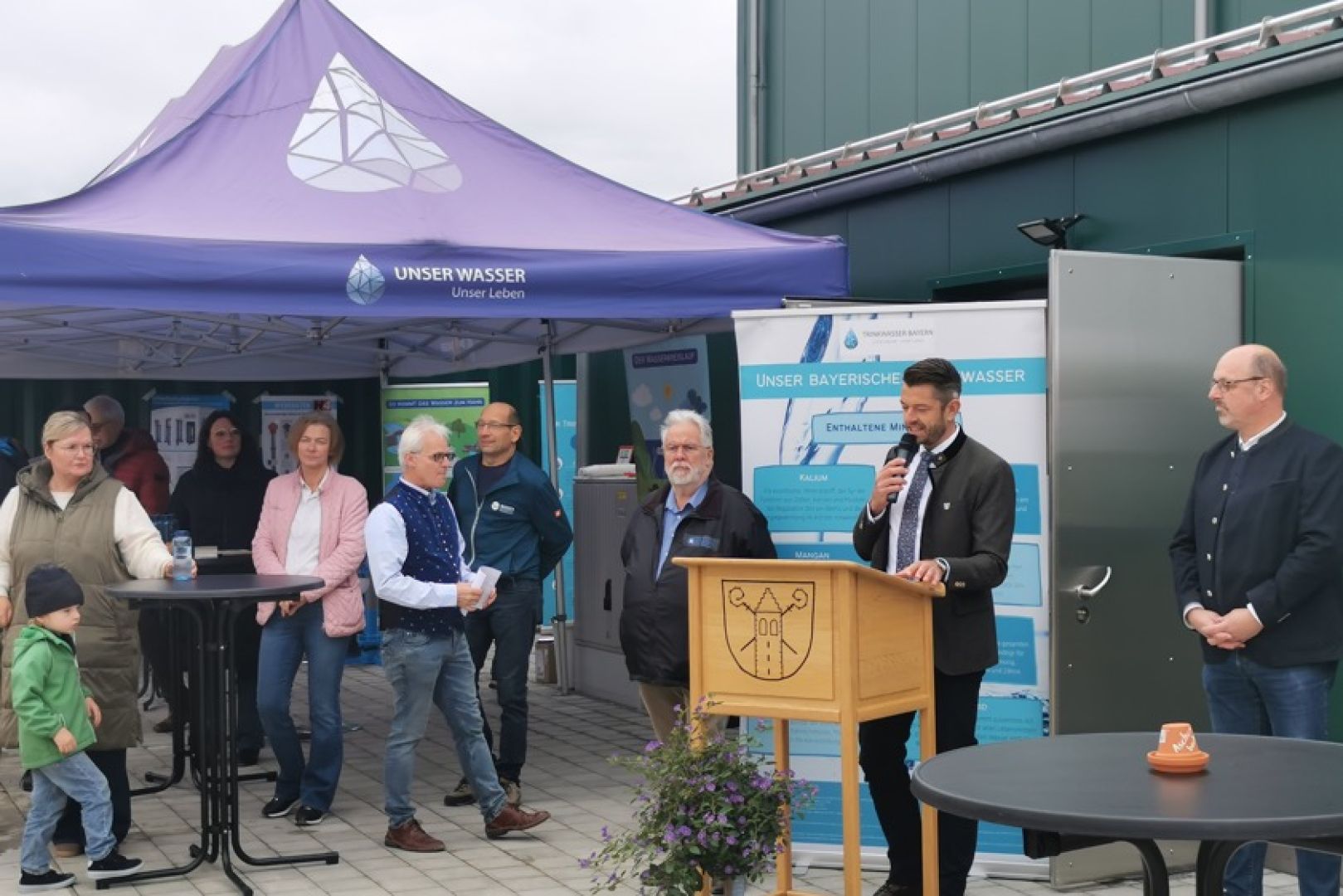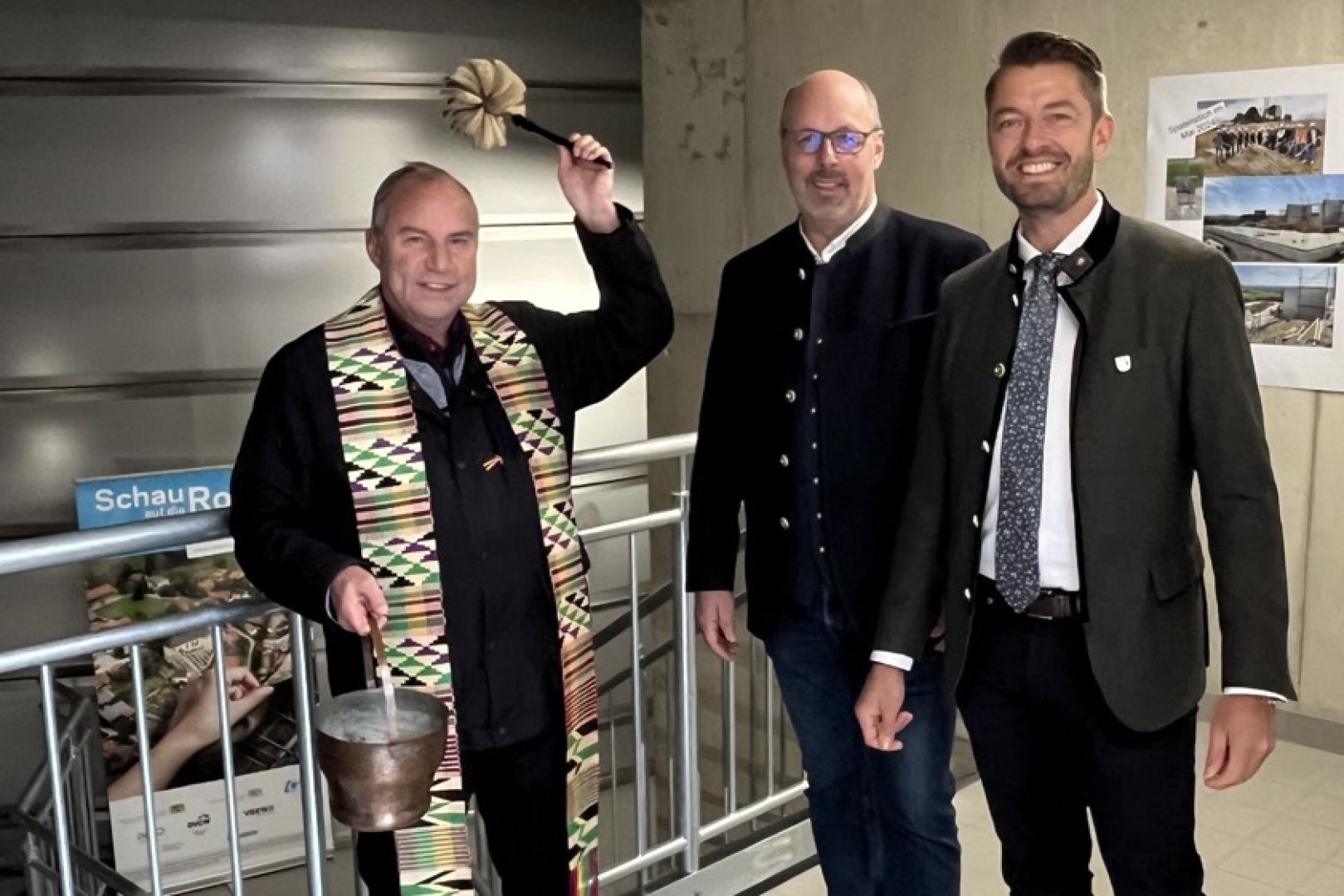 Pfarrer Georg Martin segnete nach Ansprachen von Georg Ott und dessen Bürgermeister-Kollegen Wolfgang Hagl (UWG) aus Hettenshausen sowie Manfred Huber von der KFB-Baumanagement-GmbH und Franz Maling als Vertreter des Ingenieur-Büros Kienlein den neuen Hochbehälter als neues Herzstück der Wasser-Versorgung der beiden Kommunen. Mit einem Blick zurück erinnerte Ott an die lange Planungs-Phase. Im Jahr 2008 sei man bei der Untersuchung der Bestands-Anlagen zu einem ernüchternden Ergebnis gekommen. Eine Sanierung wäre nach Auffassung von Fachleuten nicht mehr wirtschaftlich gewesen. Dringender Handlungsbedarf sei deshalb angezeigt gewesen.