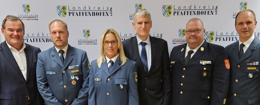 An die Adresse der Protagonisten des Abends sagte Gürtner: "Im Namen des Landkreises danke ich Euch sehr herzlich für Eure langjährige Unterstützung. Ihr seid Vorbilder für gelebten Gemeinsinn und ein unverzichtbarer Teil unserer Gesellschaft. Ich wünsche mir und hoffe, dass Ihr Eurem Engagement auch künftig treu bleibt – denn Eure Erfahrung und Eure Einsatzbereitschaft werden weiterhin dringend gebraucht." Der Schweitenkirchener Bürgermeister Josef Heigenhauser, als Hausherr der Veranstaltung, sowie Kreisbrandrat Christian Nitschke würdigten in Grußworten ebenfalls das große und unverzichtbare Engagement der Mitglieder der Blaulicht-Familie im Landkreis.