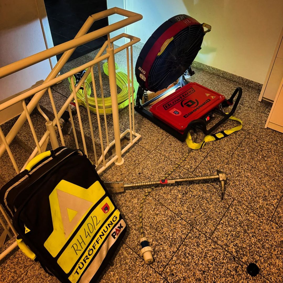 Rauchmelder lösten gestern Abend aus, Floriansjünger rückten an. Mülleimer war vermutlich wegen Zigaretten-Kippe in Flammen geraten.