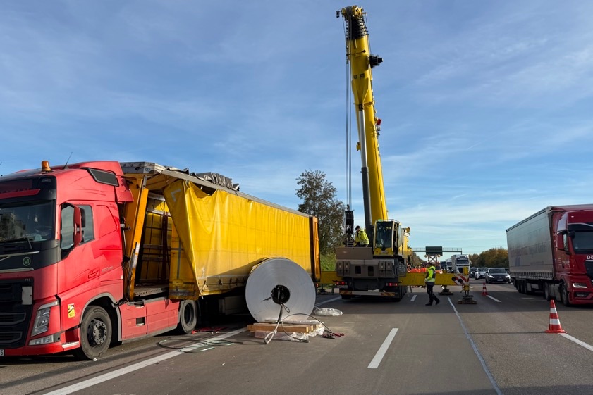 (ty) Ein schwerer Unfall zwischen zwei Sattelzügen hat sich am gestrigen Nachmittag auf der A9 bei Manching ereignet. Wie die örtlich zuständige Verkehrspolizei-Inspektion aus Ingolstadt heute meldet, krachte ein 42-Jähriger mit seinem Lkw-Gespann ins Heck eines vor ihm fahrenden Sattelzugs, der von einem 51-Jährigen gesteuert wurde. Der 42-Jährige habe noch versucht, nach rechts auszuweichen, wodurch es auch zur Kollision mit der Leitplanke gekommen sei. Der Lkw des Crash-Verursachers hatte laut Polizei zwei jeweils elf Tonnen schwere Stahlrollen geladen; durch den Unfall und das Ausweich-Manöver fiel eine davon von der Ladefläche auf die Fahrbahn.