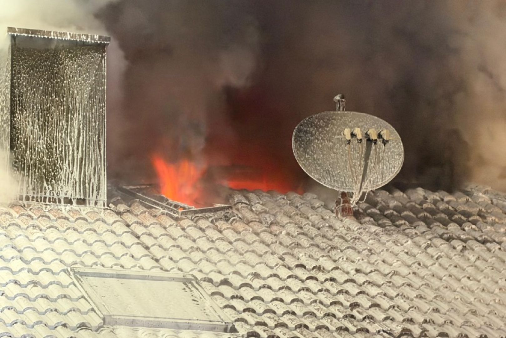 Großeinsatz im Stadtteil Zell. Polizei spricht von "knallartigem Explosions-Geräusch". Feuerwehr versucht, ein Übergreifen der Flammen zu verhindern.