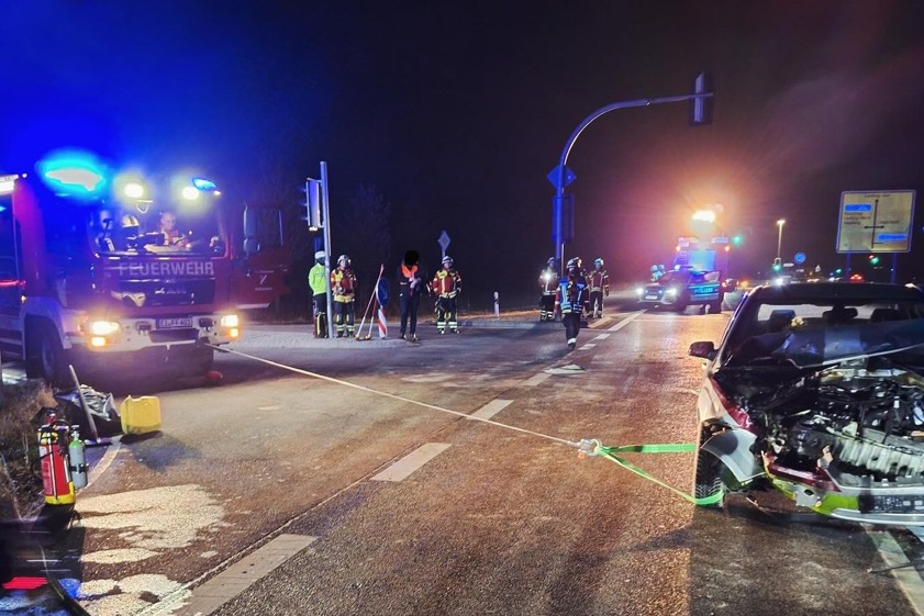 Durch die Wucht des Aufpralls sei der Ford noch gegen einen VW geschoben worden, mit dem eine 62-Jährige aus Hepberg auf der IN21 bei Rotlicht an der Haltelinie gestanden habe. Die beiden Personen, die sich in dem Seat befanden, wurde laut Polizei mittelschwer beziehungsweise leicht verletzt Beide seien nach der Erstversorgung vor Ort vom Rettungsdienst in ein Krankenhaus gebracht worden. Alle drei Autos seien nicht mehr fahrbereit gewesen und deshalb abgeschleppt worden. Der Sachschaden wurde von Streifenbeamten auf insgesamt 35 000 Euro geschätzt. Auch die Feuerwehren aus Wettstetten und Echenzell waren im Einsatz.