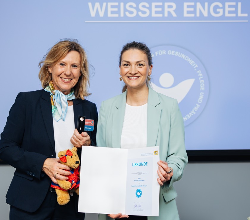 (ty) Die bayerische Gesundheits- und Pflege-Ministerin Judith Gerlach hat am gestrigen Dienstag in München die Auszeichnung "Weißer Engel" an mehrere Frauen und Männer aus Oberbayern überreicht. Damit würdigte sie das besondere ehrenamtliche Engagement in den Bereichen Gesundheit, Pflege und Prävention. Unter den Geehrten ist auch Sabine Bauer aus Gerolsbach im Landkreis Pfaffenhofen. Sie engagiert sich schon seit dem Jahr 1995 für den Verein "Herzenswünsche". Nachfolgend Auszüge aus der Laudatio, die Namen aller Geehrten sowie Informationen zu dieser Ehrung.