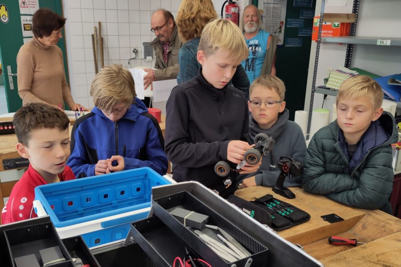 Beim Reparatur-Treff im Oktober waren – wie angekündigt – die "Waldkicker", die E-Jugend-Fußballer des TSV Wolnzach, zu Besuch (Fotos). Sie brachten auch gleich drei ferngesteuerte Modellautos mit, die nicht mehr ihre Runden drehen wollten. Die Gefährte landeten sogleich auf der Werkbank, um sie wieder rennfit zu machen. Unter der Anleitung von Reparatur-Helfer Tomas Korosi und mit viel Ehrgeiz erreichten die Nachwuchs-Reparateure ihr gestecktes Ziel. Die "Waldkicker" setzen sich – neben ihren sportlichen Herausforderungen – auch für die Umwelt und für Abfall-Vermeidung ein. Frei nach dem Motto: "Wir beschäftigen uns mit der Zukunft, denn in der werden wir leben!" Die Ehrenamtlichen vom Reparatur loben: "Vielen Dank für die Absichten dieser Kinder."