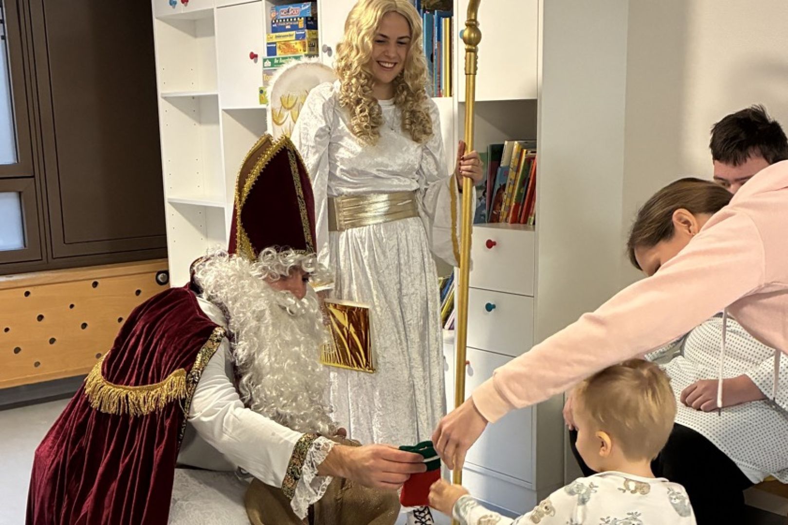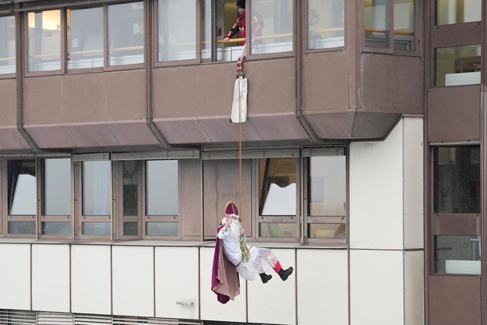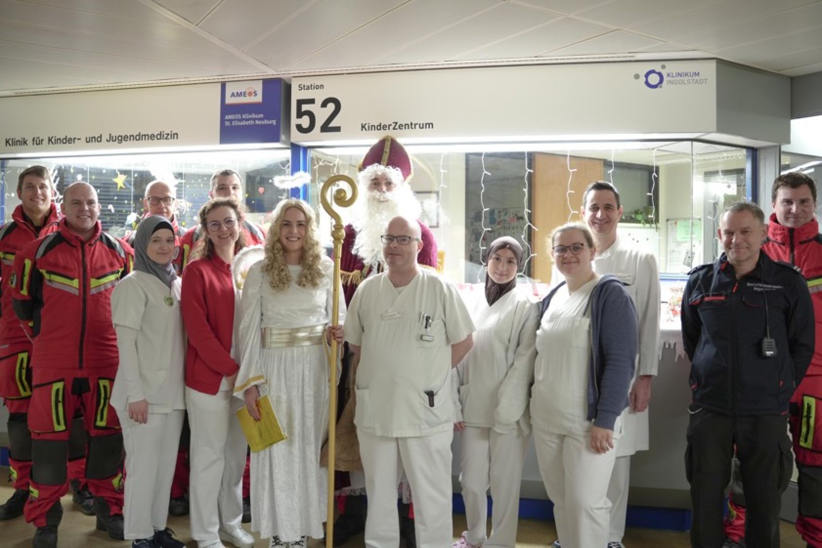 (ty) Mit weißem Bart, Zipfelmütze und rotem Gewand hat sich auch in diesem Jahr wieder ein als Nikolaus verkleideter Höhenretter von der städtischen Berufsfeuerwehr an der Außen-Fassade des Klinikums von Ingolstadt abgeseilt und ist über ein Fenster direkt auf die Kinder-Station geklettert. Dort wurde er von den kleinen Patientinnen und Patienten bereits mit großen, strahlenden Augen erwartet. Mit im Gepäck hatte er jede Menge süße Überraschungen für die Buben und Mädchen. Eine gelungene Neuauflage dieser traditionellen Aktion der Floriansjünger.