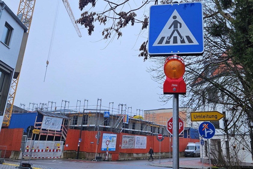 2027 soll die Anlage "St. Franziskus" bezugsfertig sein. Neuer, provisorischer Zebrastreifen soll Sicherheit für Fußgänger während der Bauphase erhöhen.