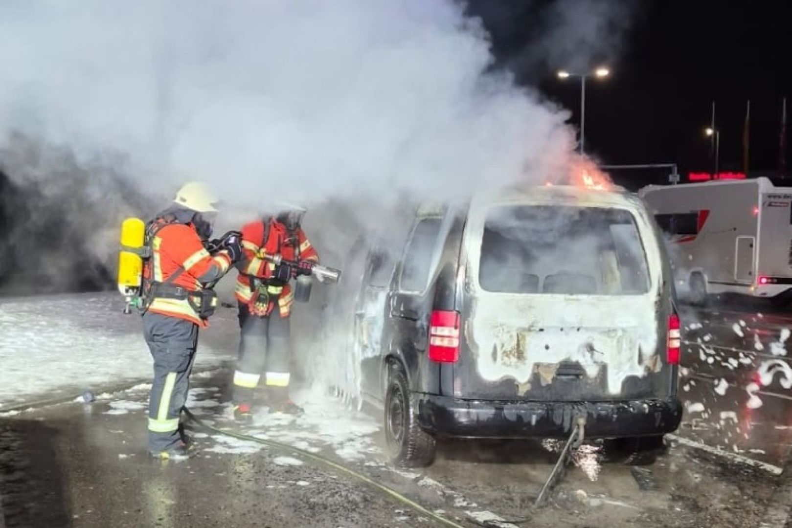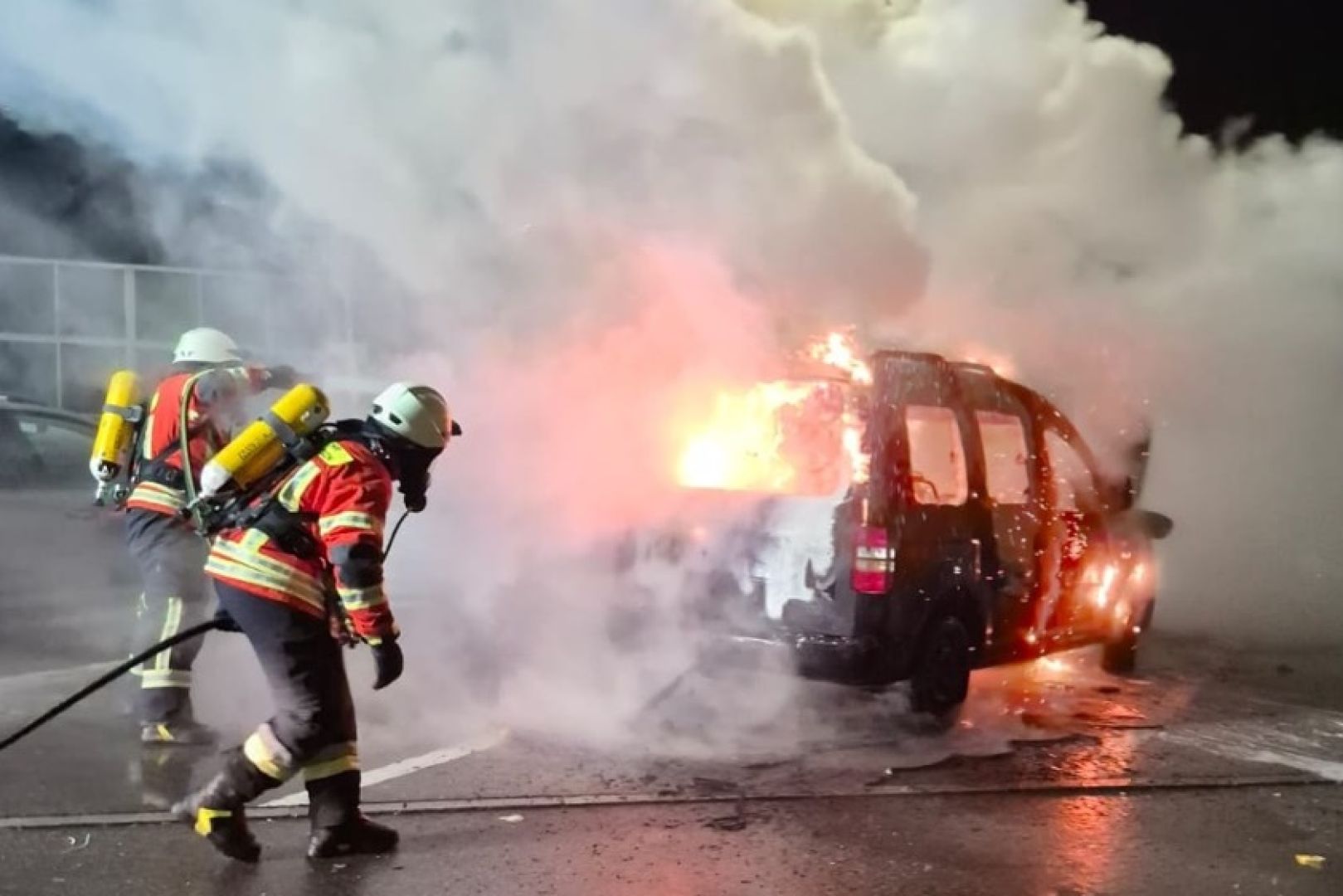 (ty) Zum Raub der Flammen geworden ist ein Pkw am heutigen Morgen im Gemeinde-Gebiet von Schweitenkirchen. Wie die Polizei berichtet, war ein 28-Jähriger mit seinem VW-Caddy auf der Autobahn A9 in Richtung München unterwegs, als es gegen 6.30 Uhr zu dem Zwischenfall kam. Kurz vor der Rastanlage Holledau-West bei Geisenhausen habe der Mann zunächst Rauch-Geruch aus dem Bereich der Klima-Anlage wahrgenommen und deshalb den Parkplatz angesteuert. Nachdem er seinen Wagen abgestellt habe, habe er Qualm aus dem Motorraum bemerkt. "Sofort nach dem Öffnen der Motorhaube geriet der Motorraum in Brand", so die Polizei.