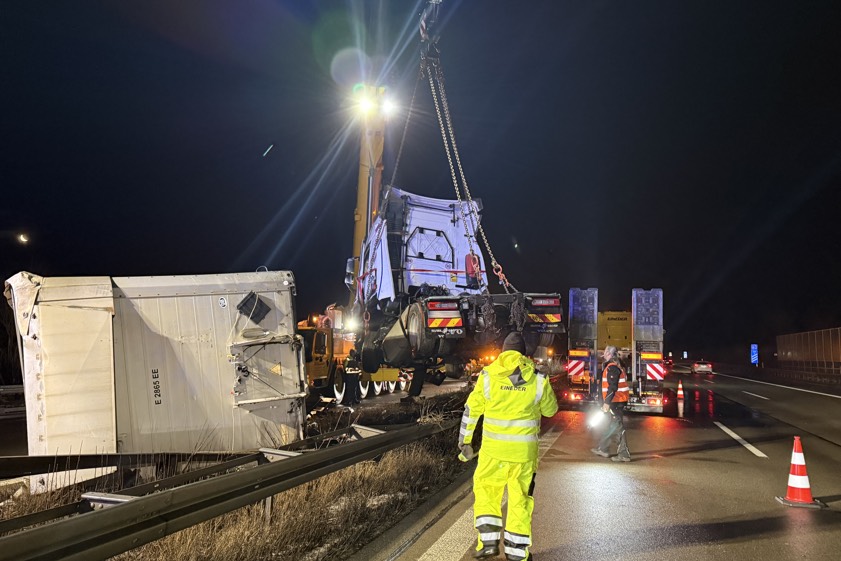 Der Verkehr werde seit dem Unfall an der Anschlussstelle Ingolstadt-Süd von der Autobahn abgeleitet. Nach Angaben der Polizei waren gegen 2.20 Uhr bei der Einsatz-Zentrale mehrere Mitteilungen über einen zwischen den A9-Anschlussstellen Ingolstadt-Süd und Ingolstadt-Nord verunglückten Lkw eingegangen. Laut ersten Meldungen sei der 69-jährige Fahrer eines bulgarischen Sattelzuges zu weit nach rechts gekommen, habe dort eine provisorische Leitplanke touchiert und sei anschließend durch die Mittel-Leitplanke gekracht. Der Auflieger sei umgestürzt, die Zugmaschine habe sich um 180 Grad gedreht und sei schließlich im Mittelstreifen zwischen den beiden Richtungs-Fahrbahnen zum Stehen gekommen.