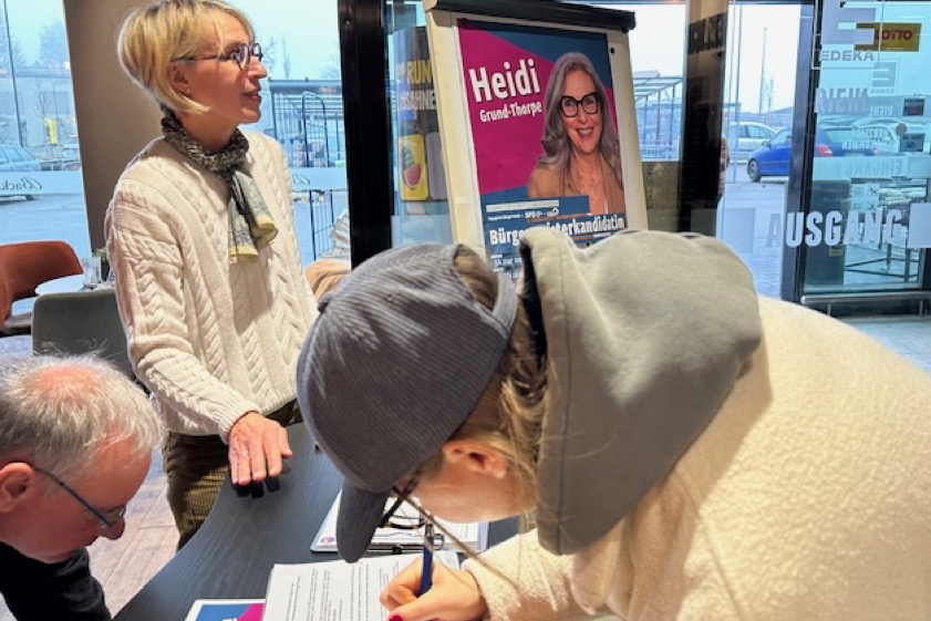 (ty) Mit "großem Erfolg" hat das "Bündnis Fortschritt Schweitenkirchen" (BFS) nach eigenem Bekunden am Samstag die Unterschriften-Sammlung für ihr Bürgerbegehren zur Rettung des Rathauses gestartet. Ab 8.30 Uhr befanden sich Mitglieder der noch jungen Gruppierung den Angaben zufolge im Eingangs-Bereich des "Edeka"-Supermarktes und waren mit einem Stand vertreten. "Zahlreiche Bürgerinnen und Bürger kamen gezielt mit der Absicht, zu unterschreiben, andere stillten ihren Informations-Bedarf in konstruktiven Gesprächen", berichtet BFS-Bürgermeister-Kandidatin Heidi Grund-Thorpe.