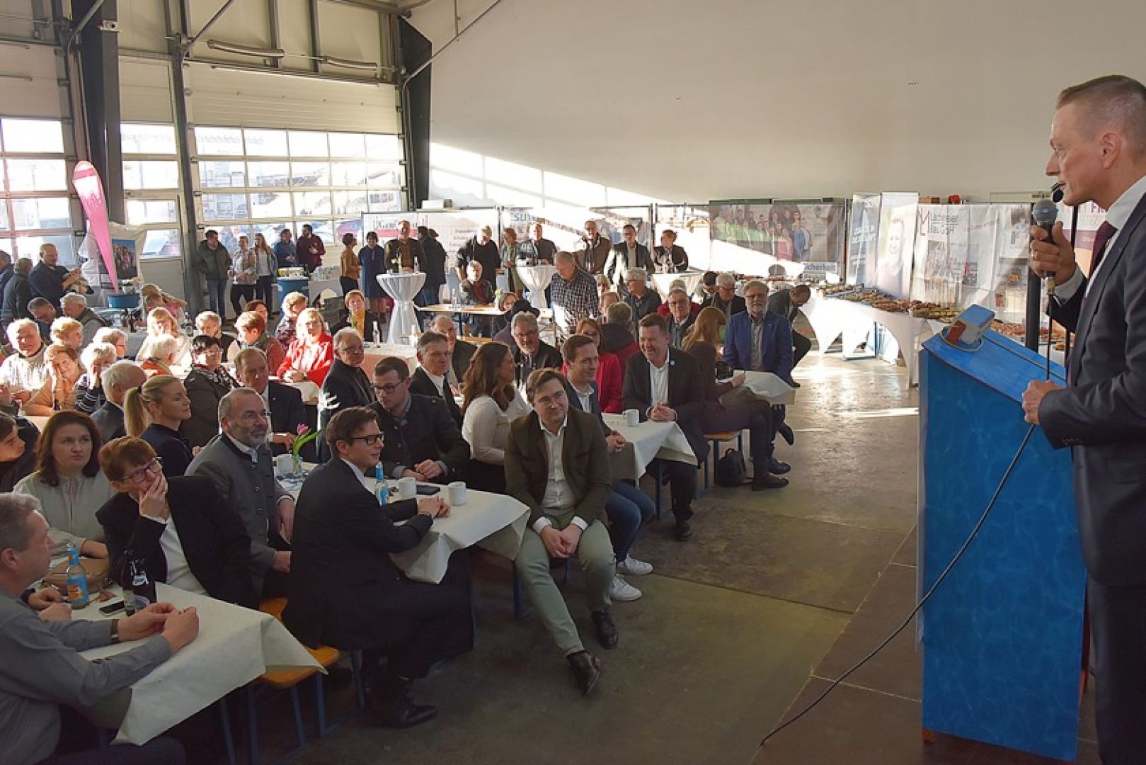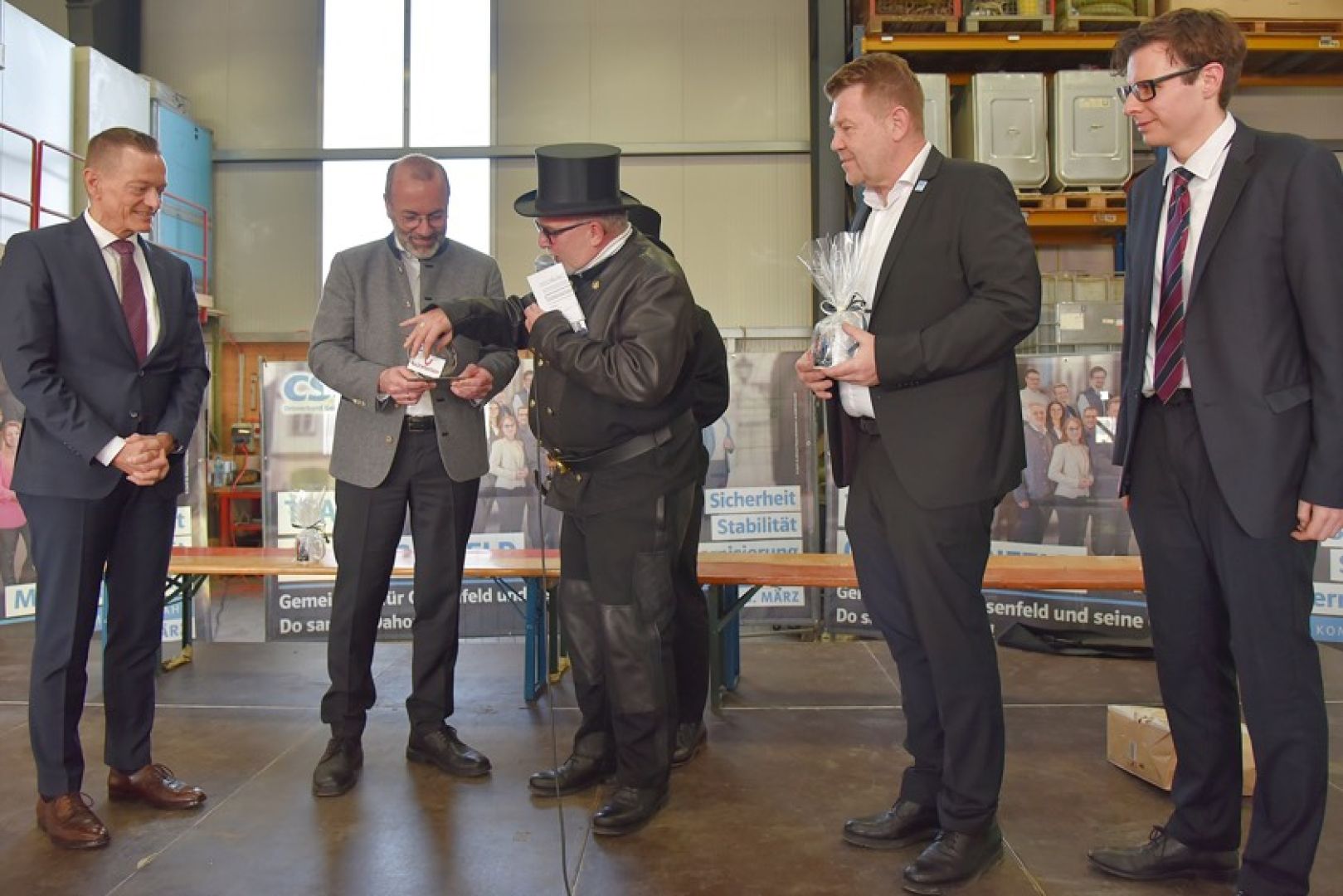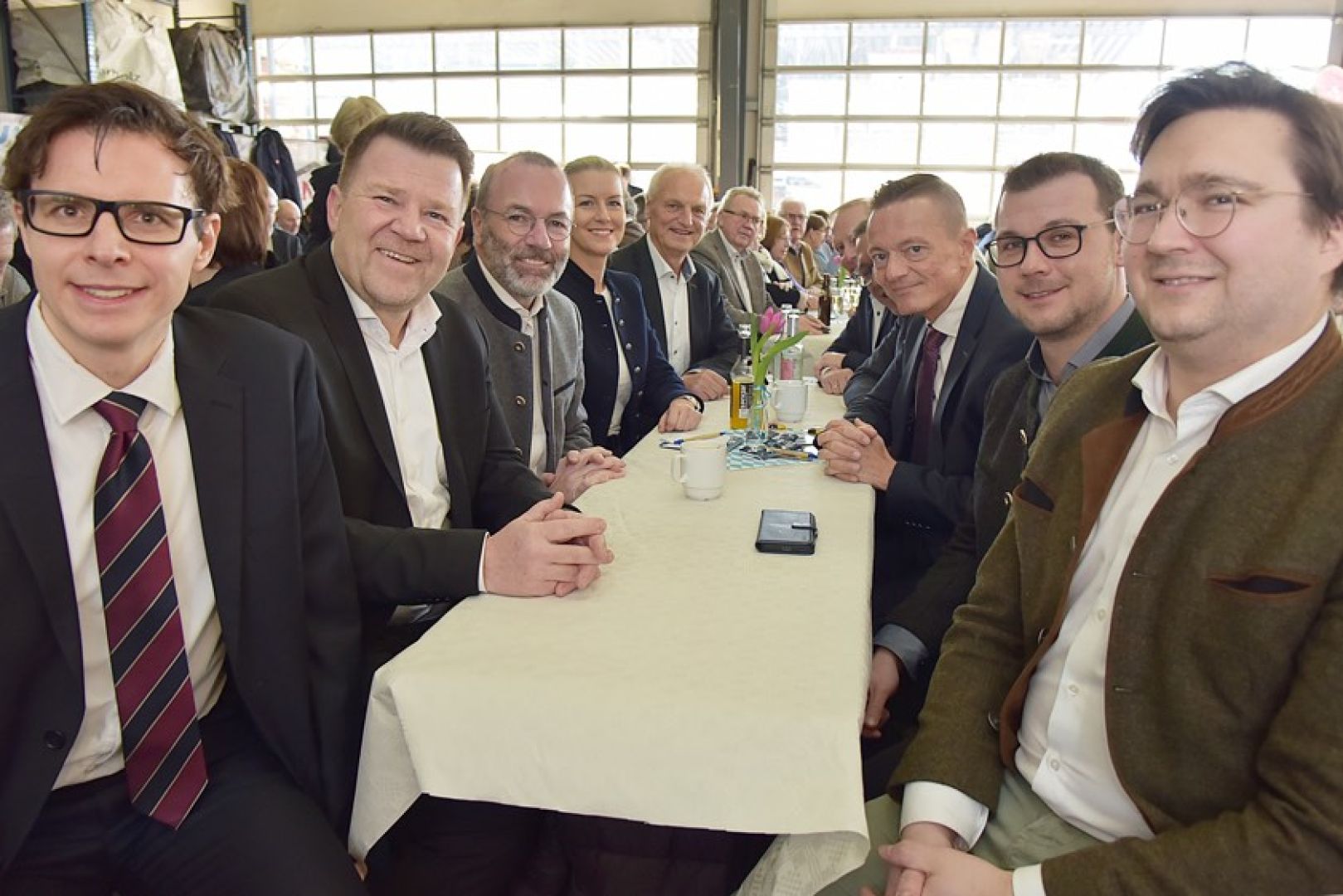 (ty) Der CSU-Ortsverband von Geisenfeld hat am Sonntag sein 80-jähriges Bestehen mit einem festlichen Neujahrs-Empfang in der Halle der Gerüstbau-Firma Lachermeier gefeiert. Mehr als 200 Gäste waren der Einladung gefolgt. Zum Auftakt gab es einen Sekt-Empfang, umrahmt von den "Hohenwarter Musebuam". Ein Höhepunkt war die Rede des prominenten Europa-Abgeordneten Manfred Weber aus dem Landkreis Kelheim; er ist Vorsitzender der EVP und auch deren Fraktions-Vorsitzender im europäischen Parlament.