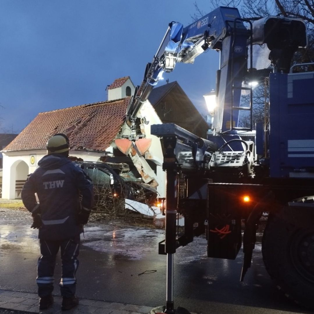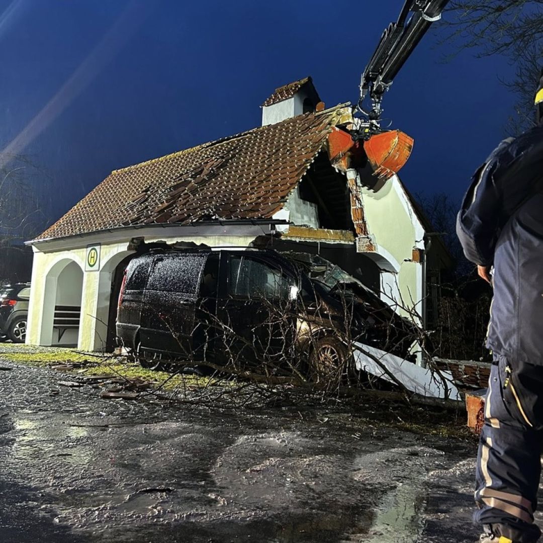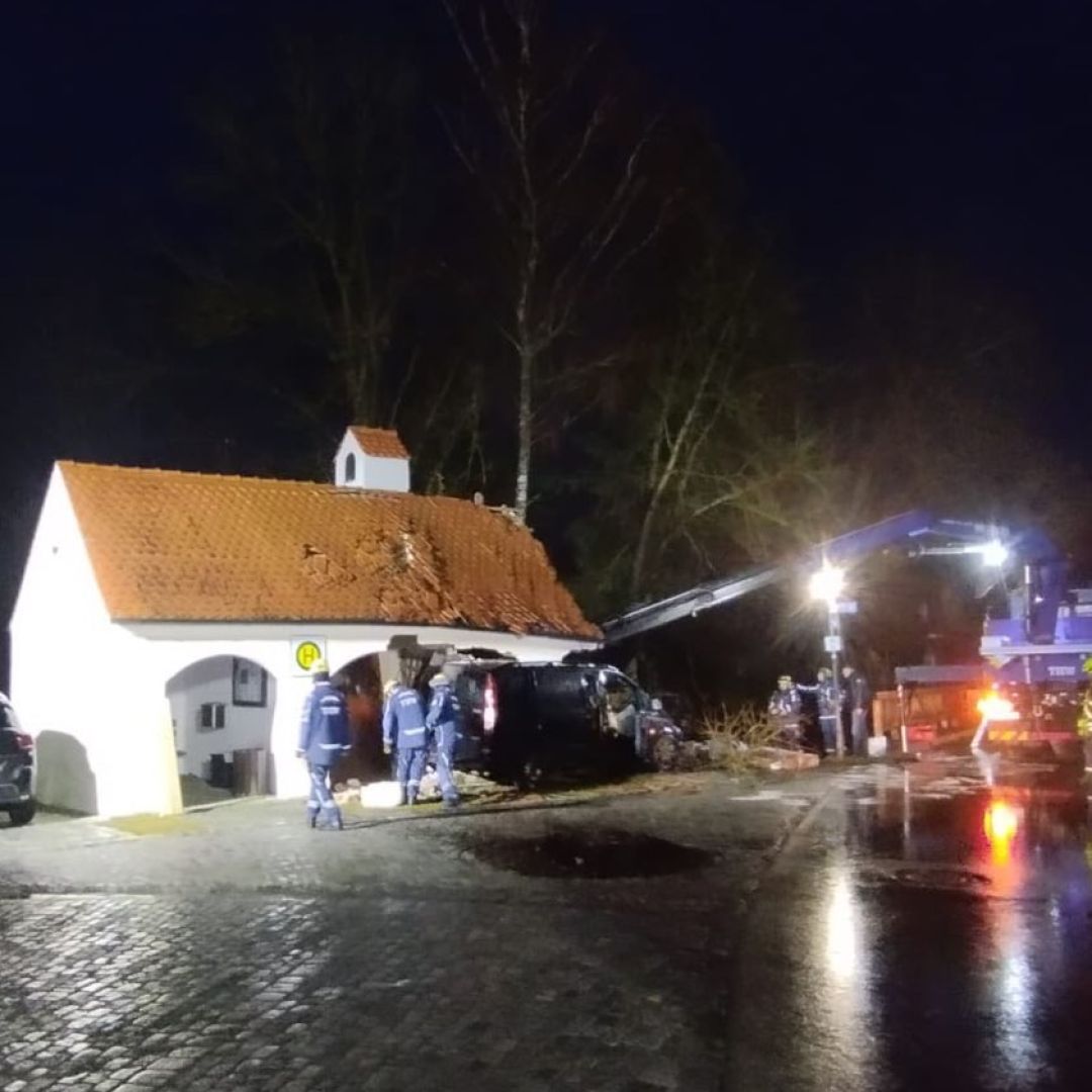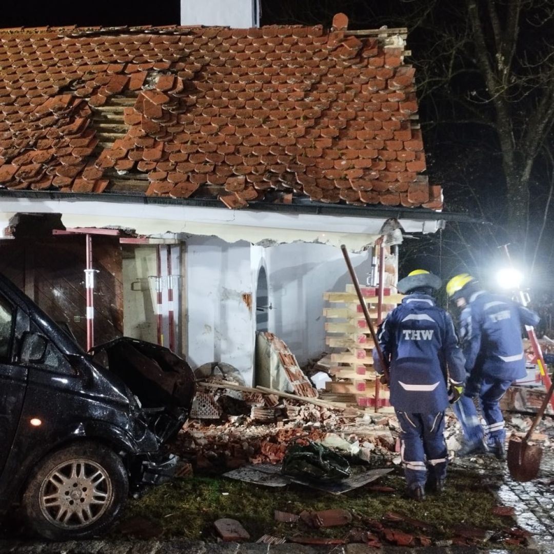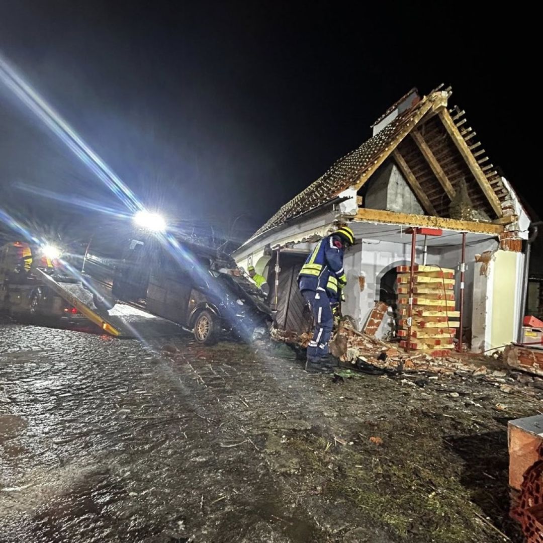 Danach sei der Crash-Fahrer von Streifenbeamten in ein Krankenhaus gebracht worden; dort sei wegen der Alkoholisierung auch eine Blutentnahme durchgeführt worden. Die Unfallstelle sei von Feuerwehrleuten abgesperrt worden. "Das Häuschen war durch den Unfall einsturzgefährdet", berichtet die Polizei. Deshalb sei auch das Technische Hilfswerk (THW) alarmiert worden, um entsprechende Maßnahmen zu ergreifen sowie bei der Bergung des Autos zu helfen. Gegen 19.30 Uhr sei der Wagen geborgen und das Gebäude abgestützt gewesen.
