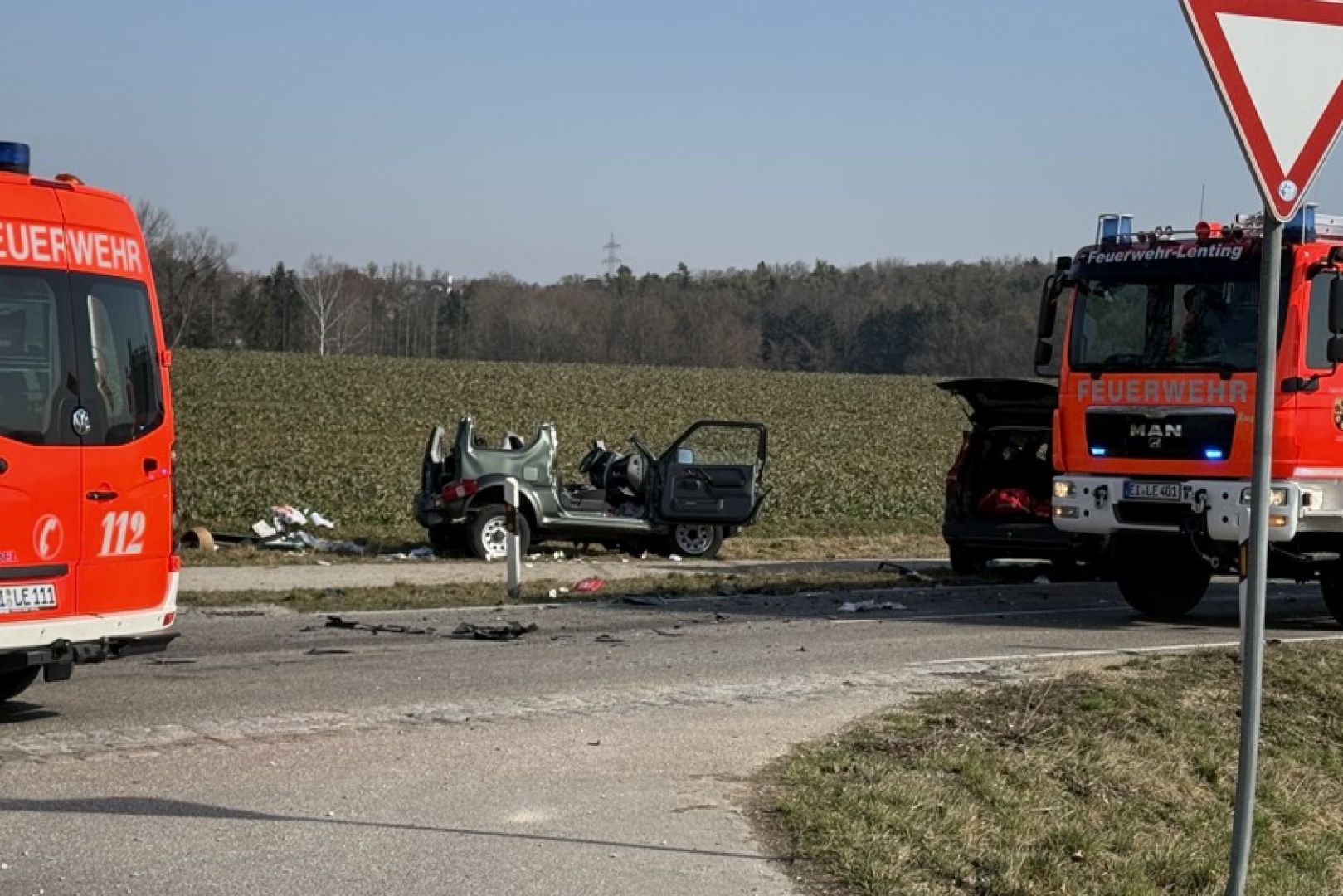 (ty) Fünf zum Teil sehr schwer verletzte Personen hat ein heftiger Verkehrsunfall gefordert, der sich am gestrigen Vormittag westlich von Lenting ereignet hat. Das Unglück, in das zwei Autos verwickelt waren, geschah gegen 9.40 Uhr auf der EI18. Ursache war nach Erkenntnissen der Verkehrspolizei-Inspektion aus Ingolstadt die Vorfahrts-Missachtung eines 71-Jährigen. Die Kreisstraße war wegen der Rettungs- und Bergungs-Maßnahmen sowie wegen der polizeilichen Unfall-Aufnahme und der Tätigkeit eines Gutachters für mehrere Stunden komplett gesperrt.