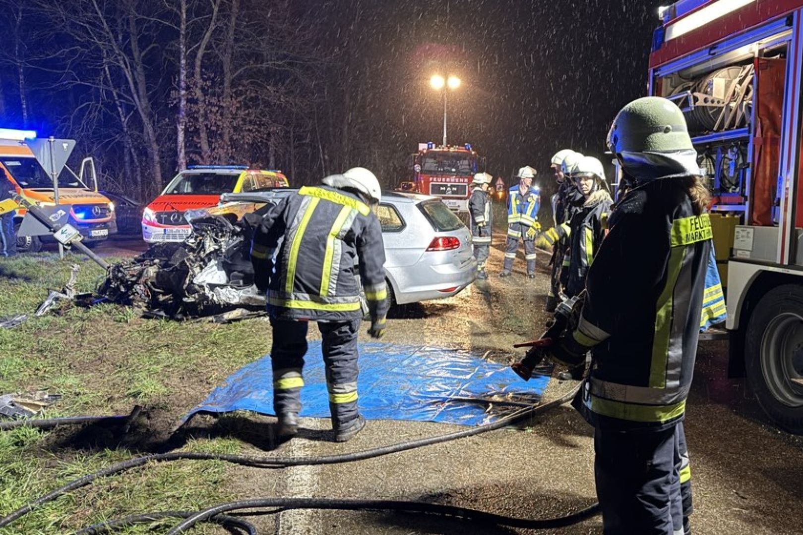 (ty) Schwere Verletzungen hat ein 26 Jahre alter Pkw-Lenker bei einem heftigen Verkehrsunfall erlitten, der am späten gestrigen Abend im Gemeinde-Gebiet von Hohenwart geschehen ist. Wie die örtlich zuständige Polizeiinspektion aus Pfaffenhofen am heutigen Sonntag mitgeteilt hat, kam es gegen 23.40 Uhr zu dem Unglück. Der junge Mann sei mit einem VW auf der Kreisstraße PAF13 zwischen dem Ortsteil Freinhausen und Hohenwart unterwegs gewesen. In einer Rechts-Kurve sei der Wagen zunächst nach links von der Strecke geraten und anschließend mit mehreren Verkehrszeichen sowie einem Baum kollidiert.