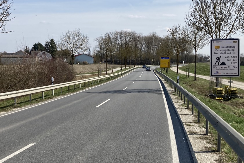 (ty) Das staatliche Bauamt von Landshut beginnt nach eigenem Bekunden am kommenden Montag, 20. April, im Gemeinde-Bereich von Neustadt an der Donau mit der Sanierung der B299 zwischen Mauern und Wöhr. "Die Bundesstraße ist dort aufgrund der Verkehrs-Belastung in einem schlechten Zustand", erklärt die Behörde. Die anvisierten Instandsetzungs-Maßnahmen erfolgen den Angaben zufolge in zwei Bauphasen unter Vollsperrung der B299. Nachfolgend die Details, auch zum Zeitplan und zur Umleitung.