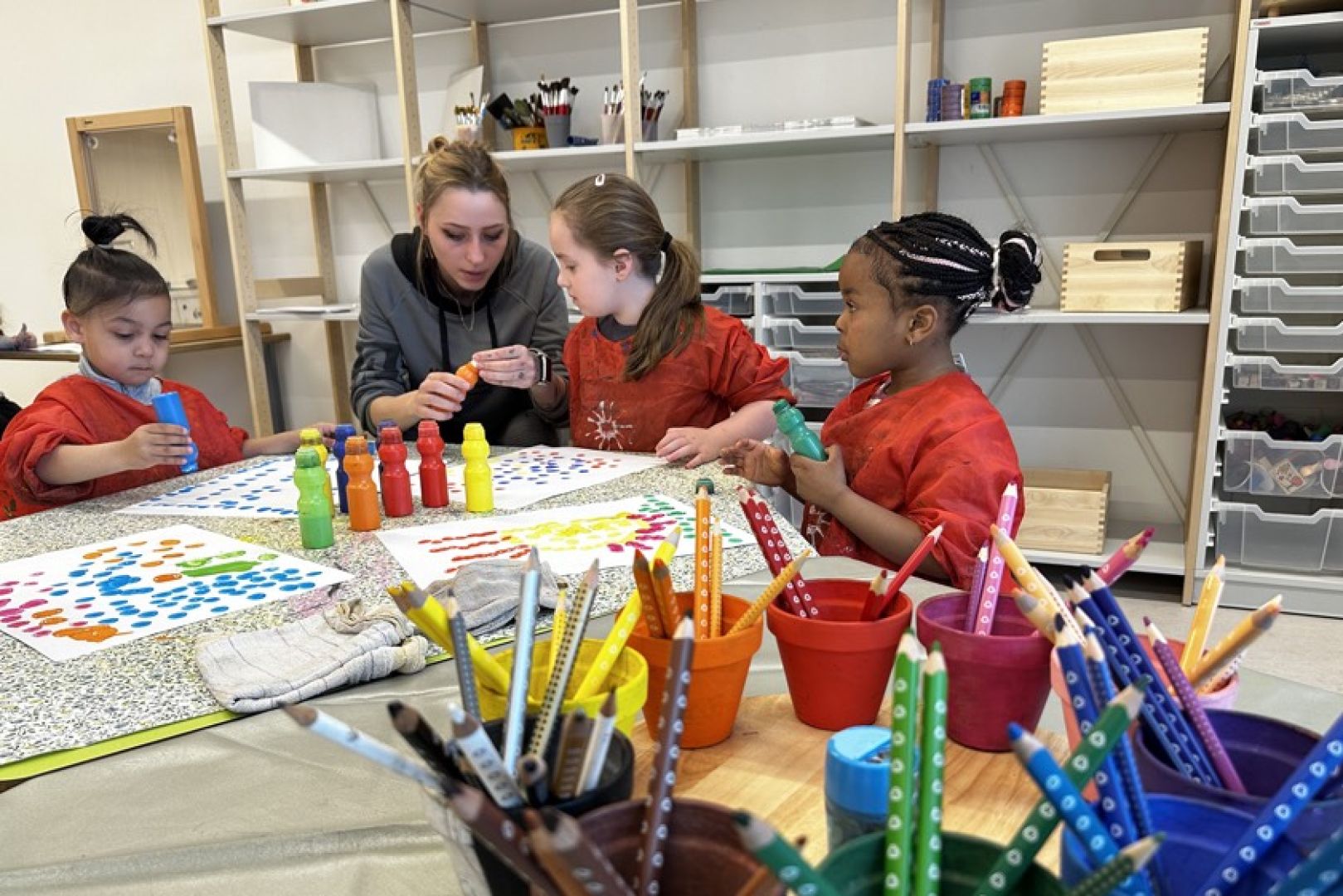Schon im Eingangs-Bereich erhalten die Buben und Mädchen den Angaben zufolge bei ihrer Ankunft eine Übersicht darüber, welche Betreuerinnen in den einzelnen "Werkstätten" tätig sind. So könnten sie selbst entscheiden, worauf sie gerade Lust hätten: "kreativ sein im Atelier beim Basteln und Malen, bauen in der Baustelle, Neues entdecken in der Wissens-Werkstatt oder in der Erlebniswelt in verschiedene Rollen schlüpfen". Nach und nach werden laut heutiger Mitteilung weitere Räume wie die Erzähl-Werkstatt, die Holz-Werkstatt, der Bereich für Brettspiele oder der Bewegungsraum geöffnet.