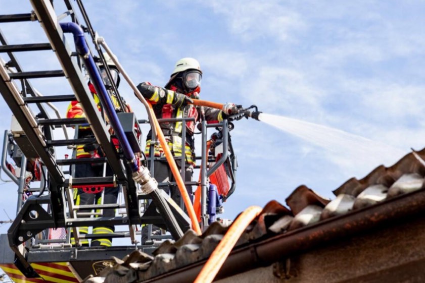 "Die Nachlösch-Arbeiten gestalteten sich aufwändig, da Eternit-Platten verbaut waren und das Dach teilweise geöffnet werden musste, um alle Glutnester abzulöschen zu können." Hierfür sei auch die Drehleiter zum Einsatz gekommen. Die Drohnen-Gruppe des Landkreises habe Luft-Aufnahmen für die Einsatz-Leitung geliefert. Insgesamt seien rund 80 Feuerwehrleute sowie der Rettungsdienst und die Polizei vor Ort gewesen – zudem Vertreter des Bauhofs und des kommunalen Ordnungsamts.