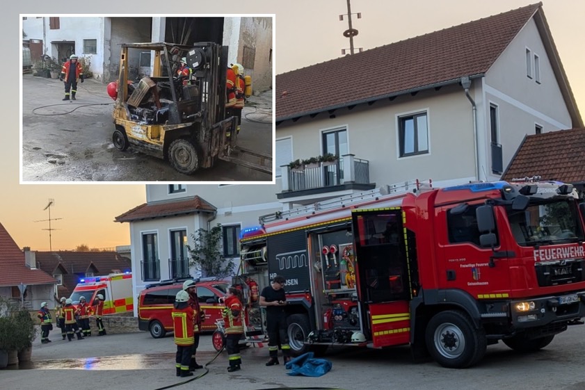 Unglück passierte gestern in Geisenhausen, als eine 21-Jährige das mit einem Gas-Tank ausgestattete Gefährt starten wollte. Zahlreiche Einsatzkräfte alarmiert.